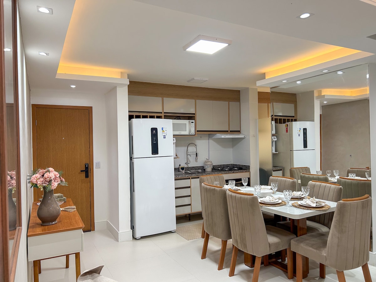 公寓距離這座城市的黃金地段 Praia dos Milionários(南區)150 公尺。 關於此房源: -三樓 - 100% Mobiliado - 2 間空調臥室(最多可容納 5 人) - 2間浴室 -房間 -廚房 -服務區域 - 陽台(配有安全網) -車庫 摘要 -電子鎖通道(實體鑰匙分配) -高速WiFi - 32 吋智慧電視 -廚房用具 -牀上用品和沐浴衣 歡迎來到我們的房源! @brisasdeilheus