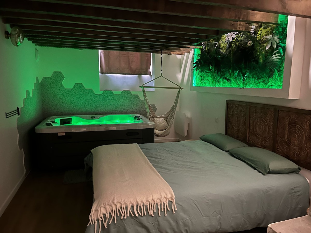 班加爾套房 (Suite BANJAR) 距離雷恩 (Rennes) 的歷史中心 20 分鐘,是一個 66 平方公尺的浪漫巢穴,靈感來自峇里島,專為兩人難忘的度假而設計。 享受高級水療與雙人淋浴,放鬆身心。一扇秘密的門後,是一個配有桑拿和按摩桌的私人水療中心。 享受加大雙人床、密宗扶手椅、蒸汽壁爐、星空。 位於市中心,靠近商店,讓您享受奢華而私密的體驗,放鬆身心,遠離塵囂。