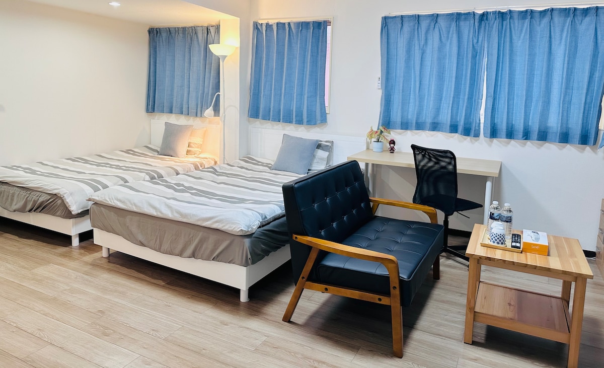 駅5分以内/ダブルベッドx2_ソファベッドx1_36.3㎡/荷物預け棚有り/24時間管理