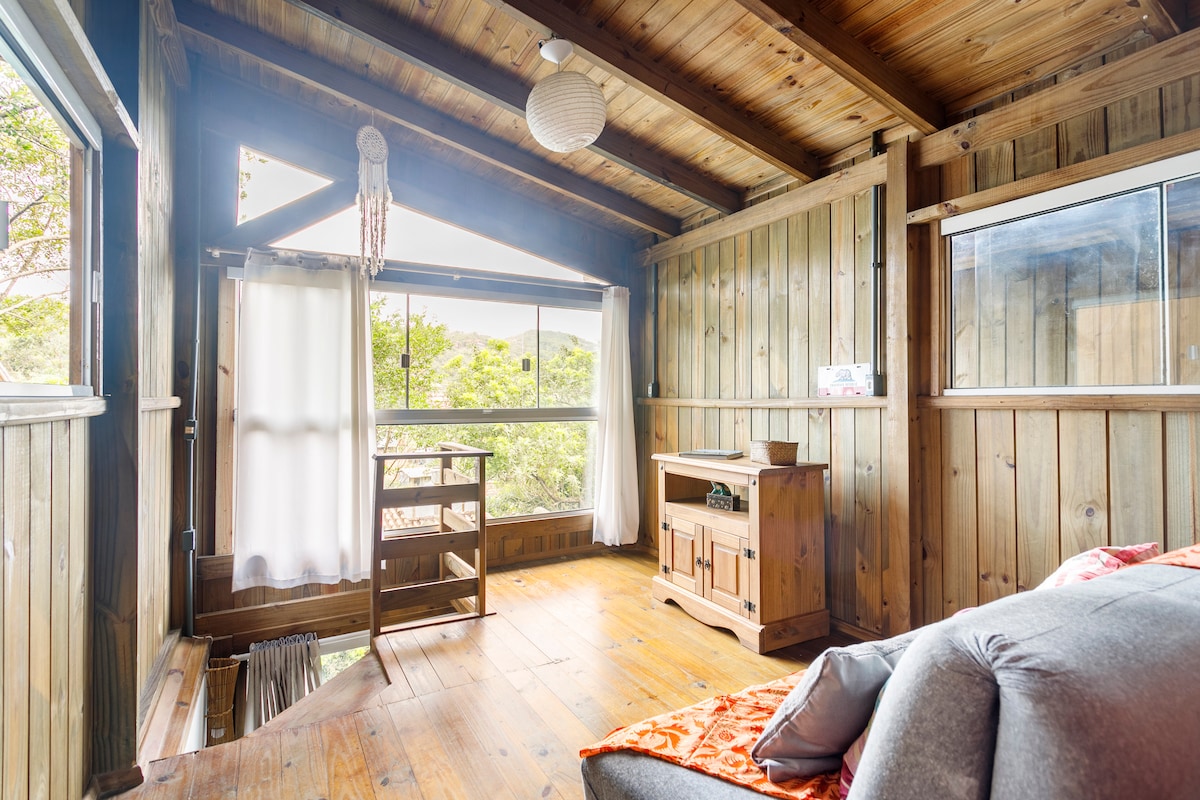 Cabaña completa perfeito para casáis y pessoas que gostam de ficar perto da praia para ir caminhando , surfar ou fazer trilhas , a casa e rhodiada do morros é muita natureza o son dos pássaros e o que mais prevalece no ambiente , e barrio é muito tranquilo , a cabana tem um jardín bem grande para los hóspedes, Wi-Fi fibra óptica .