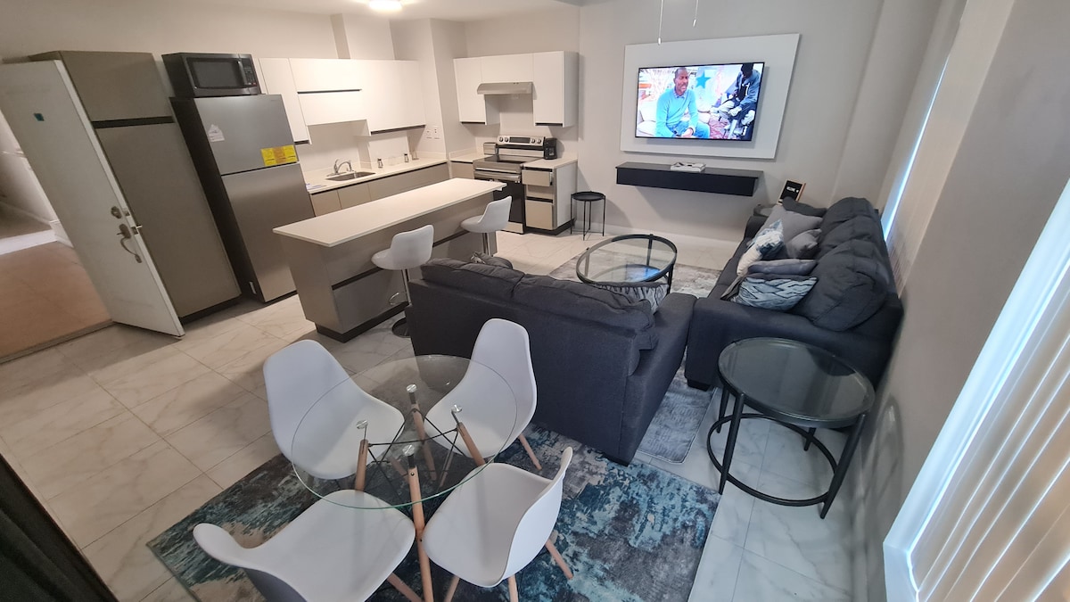 無論是商務或休閒,都可以享受這間現代化的2間臥室公寓的簡單優雅。位於新金斯敦郊區。裝潢精美,配有所有現代電器、WiFi和有線電視,您可以在郊區的隱私和舒適中放鬆身心,感受城市的脈動。這間2間臥室、2間浴室單位位於獨家門禁大樓內,配有24小時保安,配有俱樂部、健身房、網球場和慢跑步道以及備用水和發電機。」