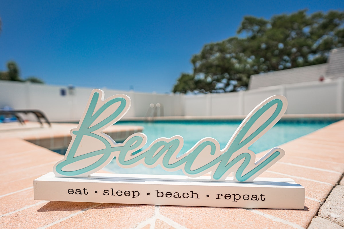 這間全新裝修的 3 房房源,讓您體驗奢華與舒適,步行 10 分鐘即可抵達海灘。享受全新的鹽水溫水泳池、開放式空間和寬敞的遮蔭門廊。房源內有現代化的廚房、全新的浴室、地板和屋頂。 從廚房工具到沙灘裝備,配備齊全的所有必需品,讓您的家庭度假無後顧之憂。在室外休息區和用餐區放鬆身心,享受完美的度假時光。 最多 6 位房客 | 不允許攜帶寵物