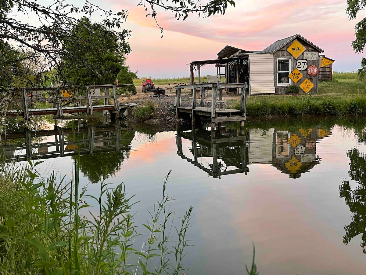 Cabin and/or camper spot, with 30 amp electric & hydrant water. Cabin has 1 full bed, bunk beds (max 4, bring your own linens, firm mattresses) equipped with AC/heat & mini fridge. Indiana's best keep secret - The Love Shack - nestled down a long lane in between 2 fields in rural Economy Indiana with pond & 3 acres to yourself. Started by my grandpa Tom Bond in 2000 and loved by all that visit. Follow us on social media. 2.5 miles to Cardinal greenway.