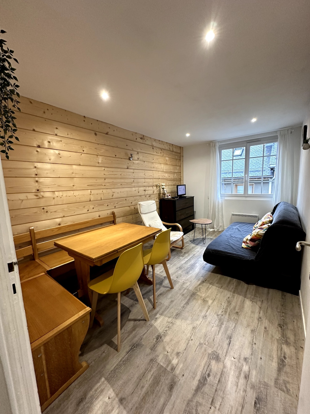 這是一間 30 平方公尺的明亮山區單間公寓,位於市中心的 Chateaubriand 住宅區,距離纜車 100 公尺。包括一個 20 平方公尺的大客廳,配有電視、廚房、帶浴缸的浴室、獨立廁。客廳有一張可折疊沙發床,入口處有兩張雙層床,可容納四人士。您將擁有微波爐、4 燒電熱爐、瑞士乳酪烤爐以及經典咖啡機和 Dolce Gusto 咖啡機。