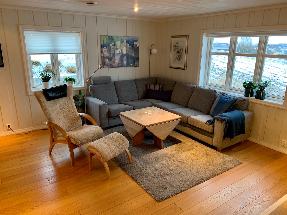 舒適住宿位於Granbakkvegen 2市中心的Stange市中心。 公寓位於獨棟住宅的地下室。 它有獨立門禁和私人寬敞的露臺,非常適合用餐和舒適。 公寓和露臺朝東,有早晨的陽光 公寓設備精良,配備您愉快住宿所需的一切設備。 夏天和冬天距離漂亮的徒步區很近,開車前往Mjøsa只需一小段路程。 步行即可抵達火車和巴士