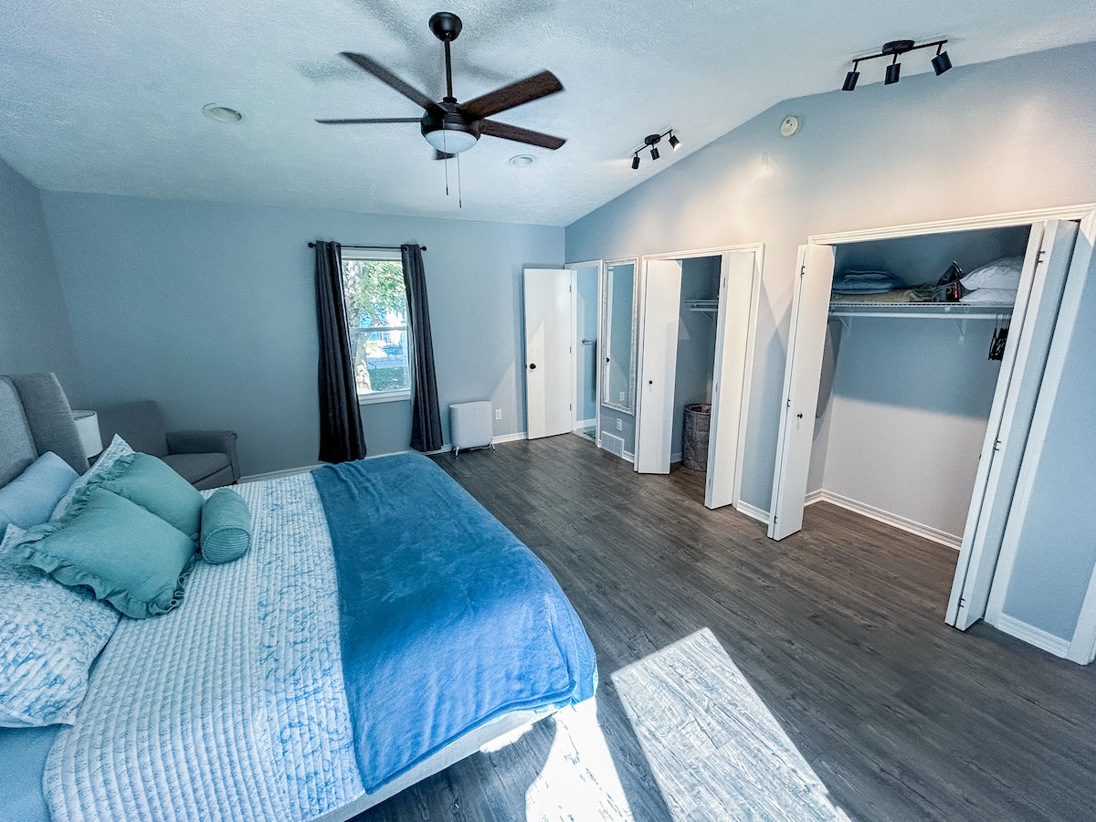 極其乾淨、更新的三間臥室和兩間浴室房源。 位於安靜的街區,但距離市中心僅幾分鐘路程。 此房源包括一個後院露台,後院空間寬敞,並設有營火區。 咖啡角、兩個無線音樂喇叭、3臺Roku電視、優質WiFi和許多其他設備與用品。 地下室有洗衣機和烘衣機、舒適的電視區、酒吧區、冰箱、浴室、遊戲、卡片和辦公室/遊戲室。