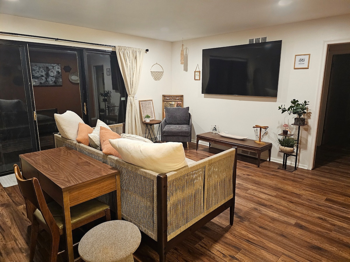 我們家中舒適的私人花園層公寓。配有全套設備的雙人床、日式床墊和全套浴室。您的廚房配備做美味餐點所需的一切。距離密歇根州立大學2英里,距離麻雀/國會大樓20分鐘,距離蘭辛湖10分鐘。後院絕對令人驚嘆,有泳池和戶外座位供您享用。餐廳、最好的雜貨店和大眾運輸工具都在步行距離內!我們與2隻凱恩㹴住在樓上,並將與您共用院子。