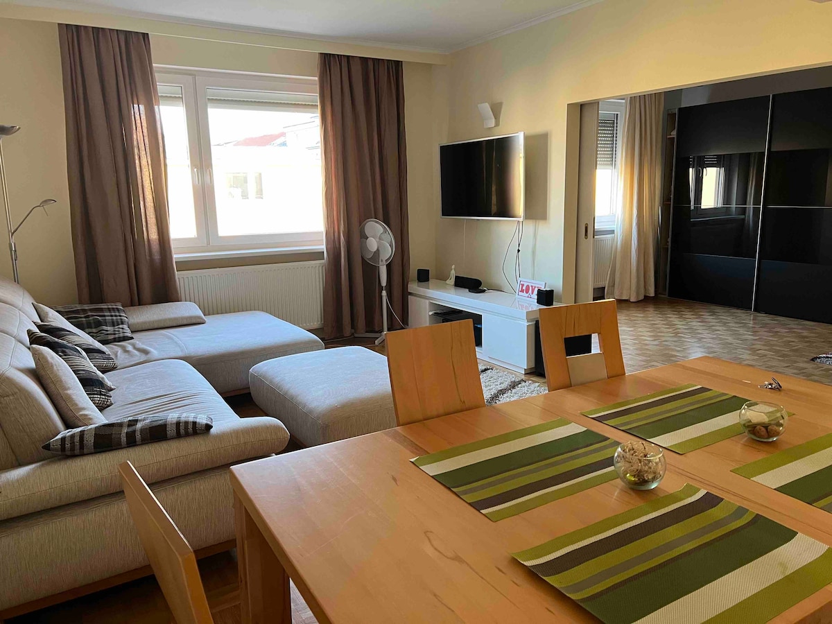 靠近機場和市中心的大型舒適公寓