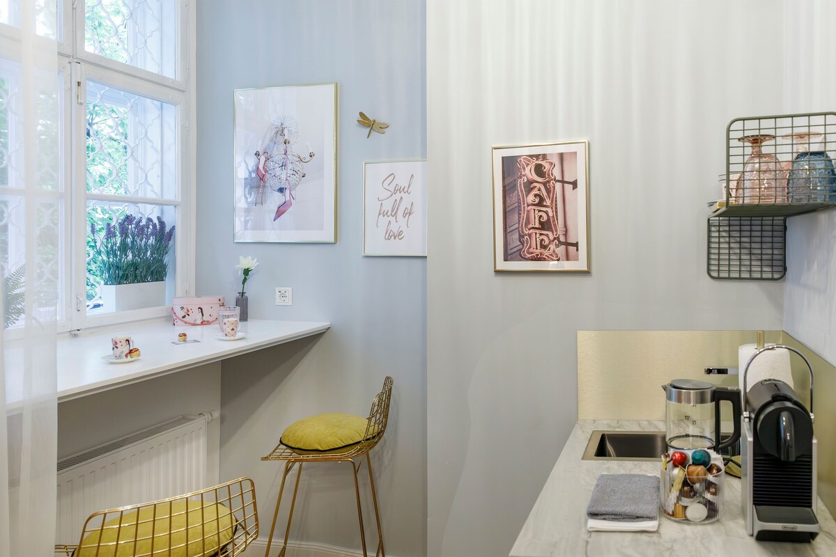 我們的Gustav Klimt工作室是一間緊湊的公寓,地理位置優越。 Belvedere Palace就在您的門口,您可以在幾分鐘內抵達市中心。 事實和特色: •飯店般的體驗 •公共交通便利 • 41平方米的公寓,配有高天花板 •提供多功能打印機 •專業管理