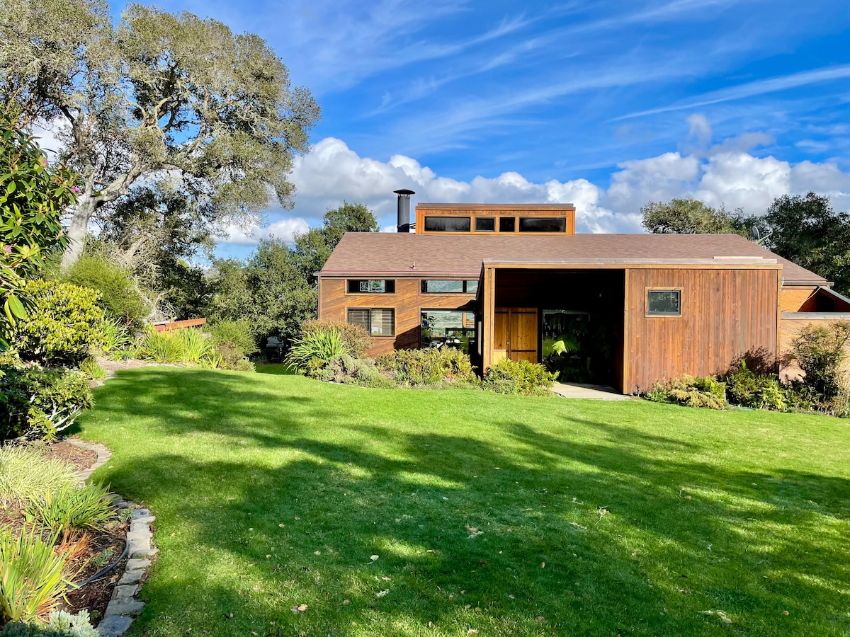 我們的房源坐落在因弗內斯山脊(Inverness Ridge)的頂部,可欣賞太平洋、法拉隆群島(Farallon Islands)和雷耶斯角國家海岸(Point Reyes National Seashore)的壯麗景色。絕對的寧靜、新鮮空氣,步行5分鐘即可抵達公園步道。藝術家度假屋安靜且無犯罪,與城市的興奮截然不同。房客對其美麗感到驚訝。 位於山脊頂部,開車11/2英里即可抵達。道路相當陡峭,有很多彎道。 免費2級充電器,我們鼓勵房客使用。
