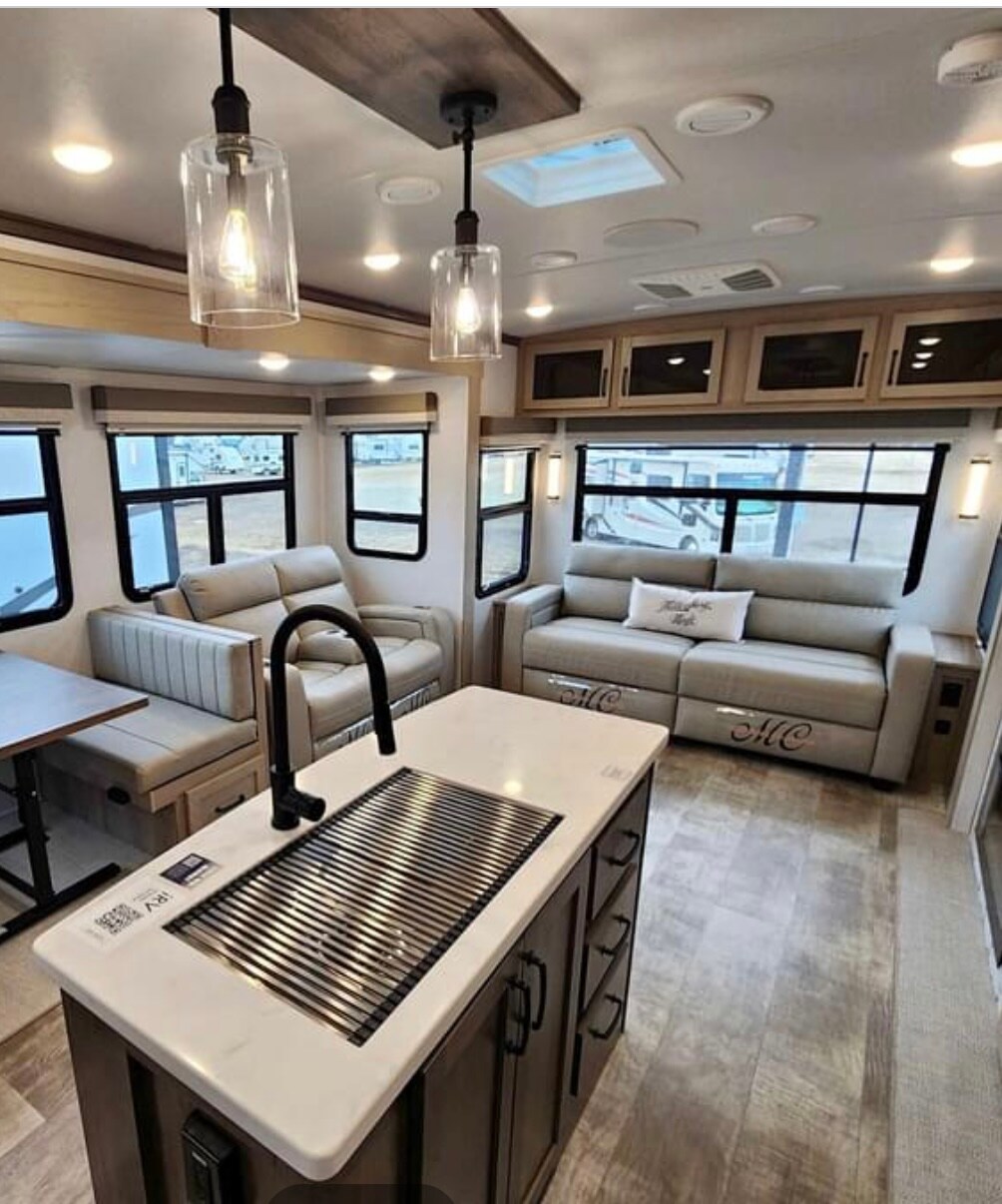 Completely remodelled 1999 fifth wheel to give it a home away from home feeling. Comfortable queen sized bed. TV comes with a few apps and wifi available (but sometimes not working great due to connection in the area). During the summer months there is a gazebo part on the camper. Absolutely NO SMOKING inside the camper. Campers run on 30amps so if you use to much electricity, you may need to jump the braker (can be reset from the RV). Ceilings are low and bathroom is small.