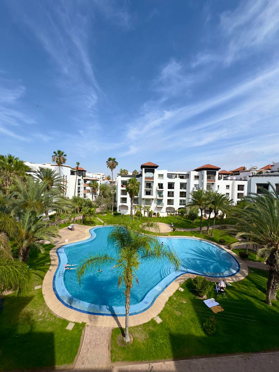 🌞 Appartement ensoleillé plein sud avec vue dégagée sur la piscine, situé au cœur de la Marina d’Agadir. Dans une résidence calme, sécurisée et très recherchée, avec piscines, jardins et accès direct à la plage. Idéal pour un séjour reposant en couple, en famille, entre amis ou pour un séjour prolongé. Restaurants gastronomiques, street-food salons de thé et commerces à pieds Sunny south-facing apartment with a pool view, located in the heart of Agadir Marina.