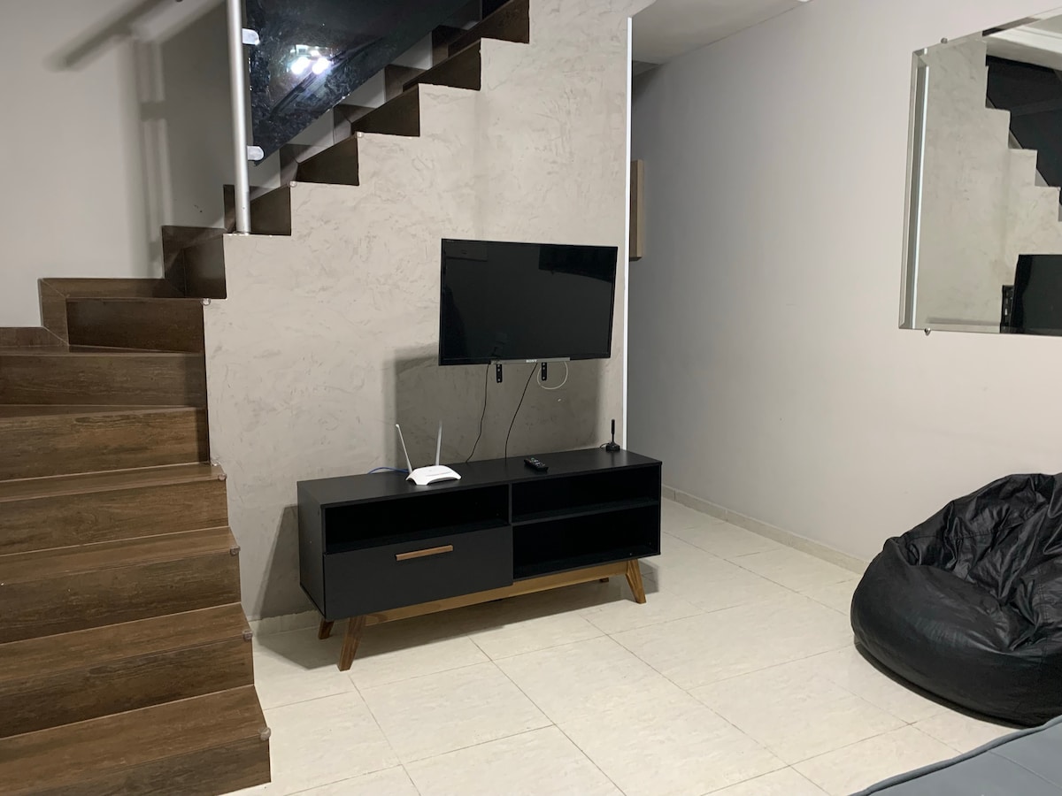 餐廳: (桌子、冰箱、微波爐) -客廳:帶Chromecast的電視、Wi-Fi、2張沙發牀和1張公共沙發。 臥室,配有1張雙人牀和1張單人牀、衣櫃、吊扇。 大浴室,盒子裡有2根鐵條。 大型泳池、水電、燒烤、01間室外浴室、桑拿房、更衣室。 廚房:在泳池的室外區域,配有爐子、水槽、冰箱和廚房用具 車庫