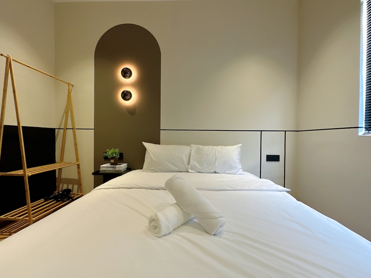 此套房配有客廳+臥室+附設浴室。無需步行通過任何共用的起居空間即可抵達臥室(僅與其他房客共用走廊)。門由智慧門鎖系統固定,可自助入住和退房。 我們的房源位於市中心安靜的街區。房源寬敞,四周環繞著綠地。房客可以在白天享受便利[距離機場5分鐘,開車10分鐘即可抵達舊城區和Ipoh Parade],夜間享受安靜放鬆的住宿。