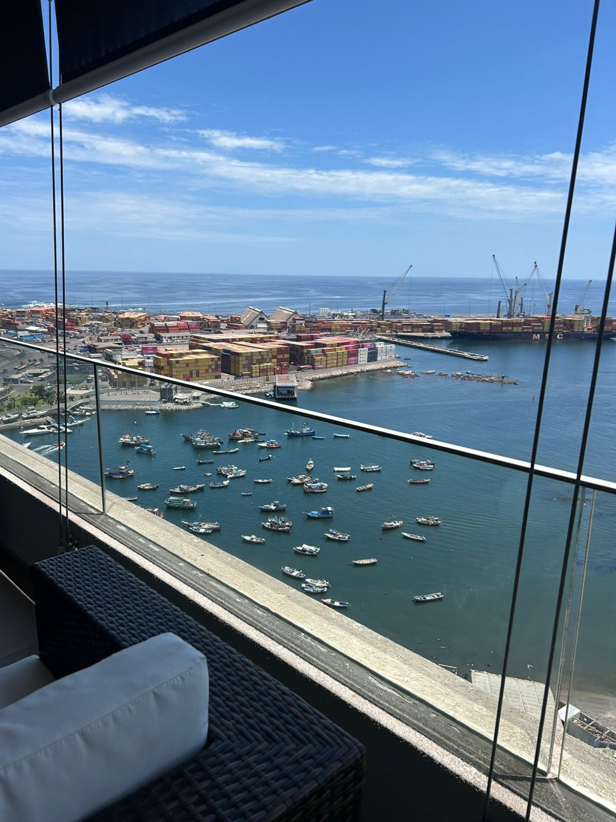 兩臥室公寓,可欣賞Cavancha海灘的美景,位於半島地區。 大樓名稱為Royal Marine ,您可以在地圖上找到它,以參考該位置。 從大樓步行前往Cavancha海灘和Brava海灘,大樓附近有餐廳、酒吧、賭場、超市和旅遊景點。 非常好的連線。提供免費停車位。