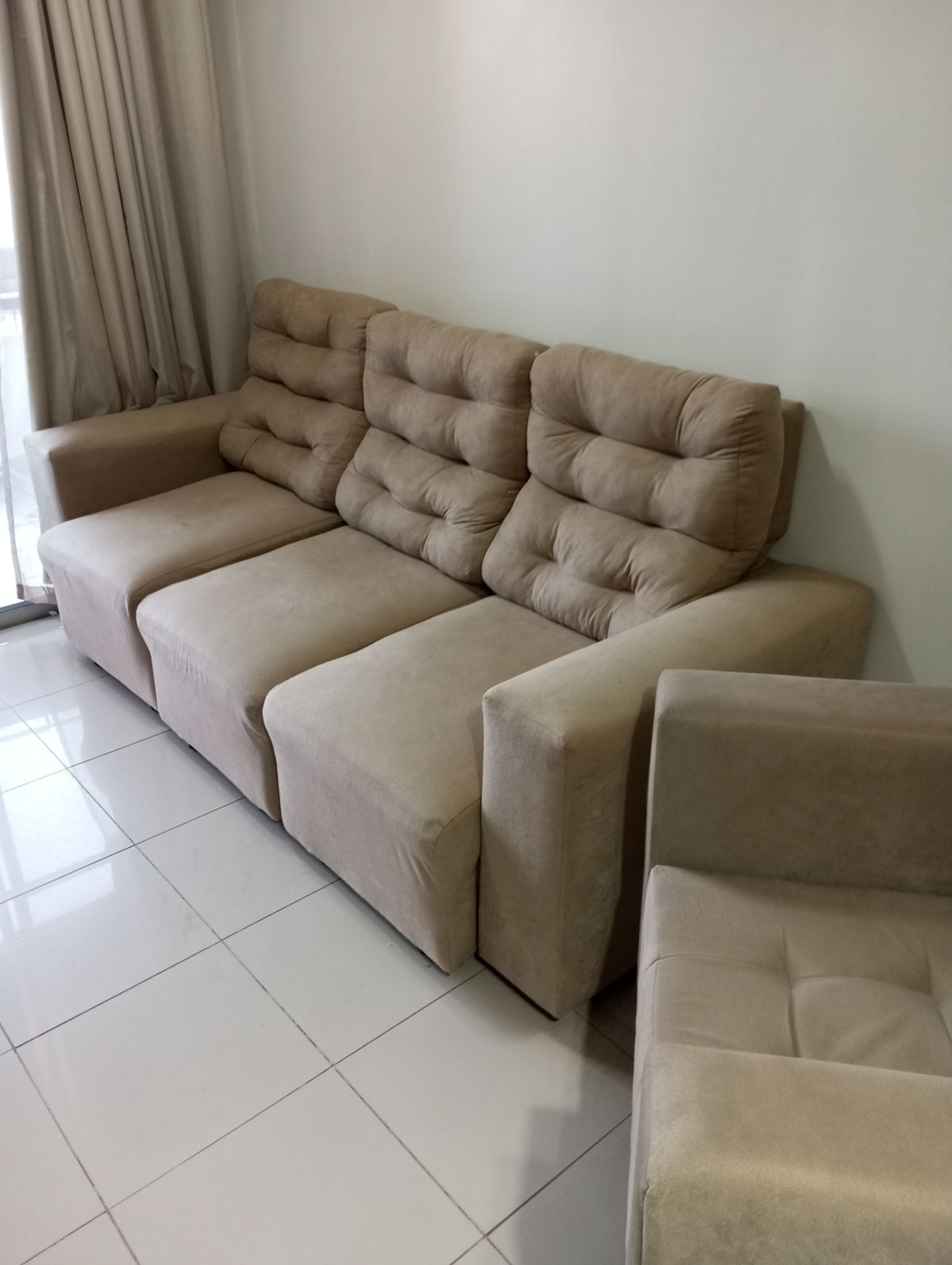Apartamento térreo, (possui grades nas janelas) condomínio fechado com serviço de portaria, ambiente familiar. Dispõe de 02 quartos - 1° quarto :ar condicionado, escrivaninha, 01 CAMA CASAL - 01 colchão solteiro. 2° quarto: ventilador, 01 CAMA CASAL, closet. 01 sala - sofá , mesa de jantar, TV. 01 cozinha com armários, fogão, micro-ondas , 01 frigobar, máquina de lavar. 01 banheiro com água quente. Possui pistas para caminhadas, quadra de areia, piscinas.