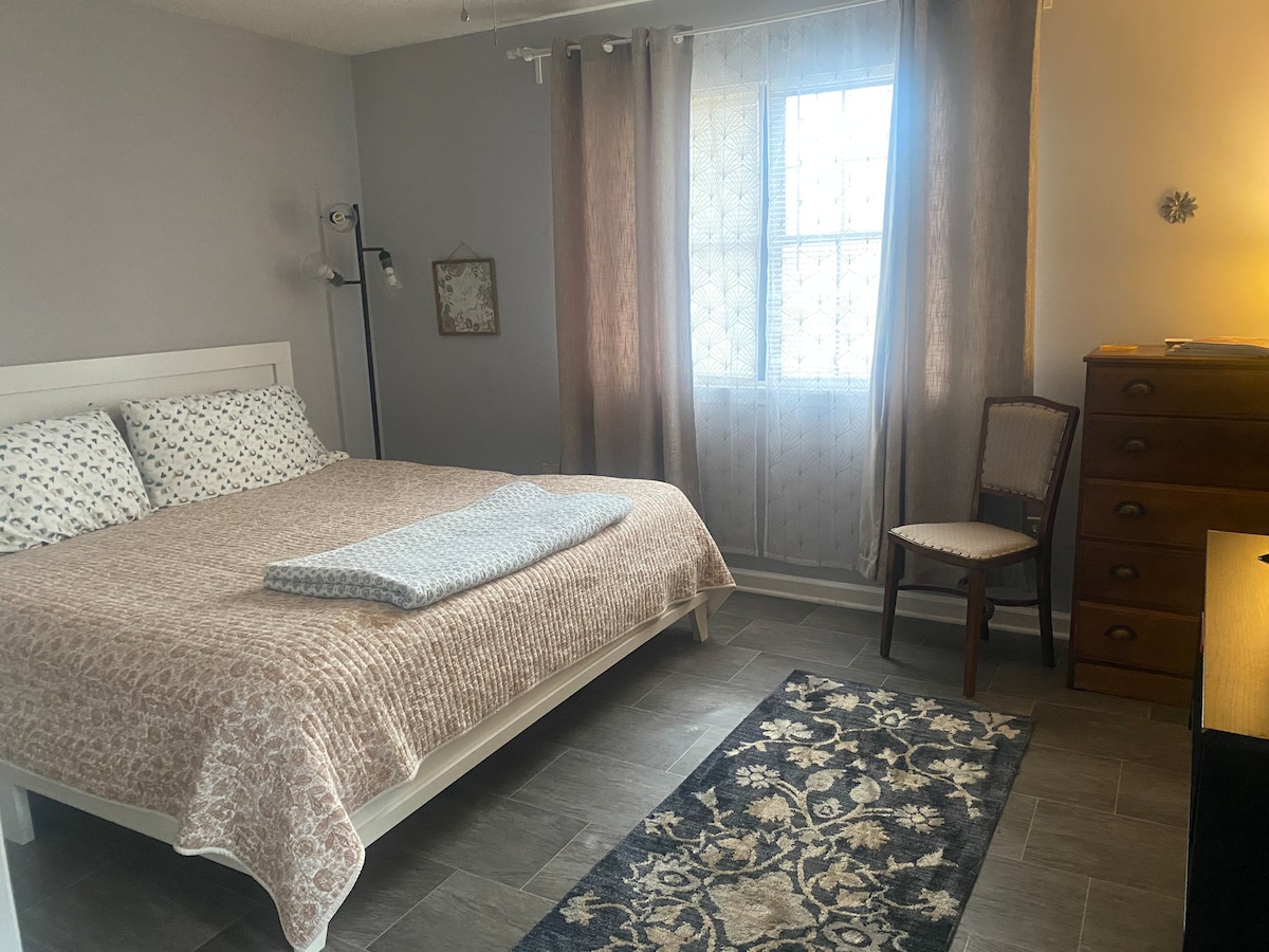 位於菲茨傑羅市中心,有磚街。 全新翻修,寬敞、舒適、非常乾淨! 它有一張加大雙人床、一張全尺寸床和步入式淋浴間。 一張組合式沙發和一張大腳凳完善了起居空間。每個房間都有電視和大餐桌。 廚房內提供所有設備與服務。 景觀非常好,讓您放鬆身心,享受您的住宿!四家餐廳、大劇院和購物中心都在一個街區內。 禁止攜帶寵物和吸煙!