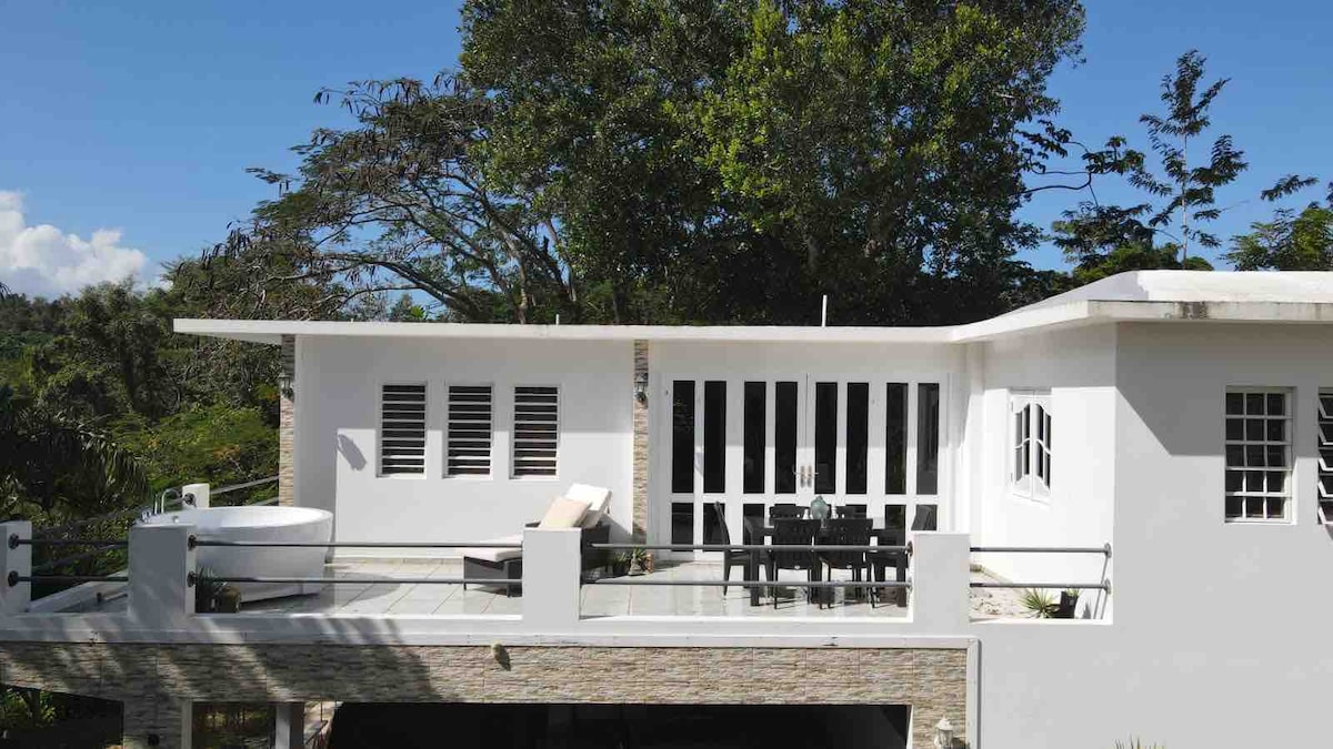 Submerge yourself into your very own piece of paradise surrounded by nature, as you access the private Suite with its very own private entrance located on a second floor. As you go up the stairs you will get access to a private patio with a panoramic tropical view where you will find your private outdoor tub designed specially for couples. This tub was created thinking of our tropical climate, making it the perfect refreshing puertorican oasis.