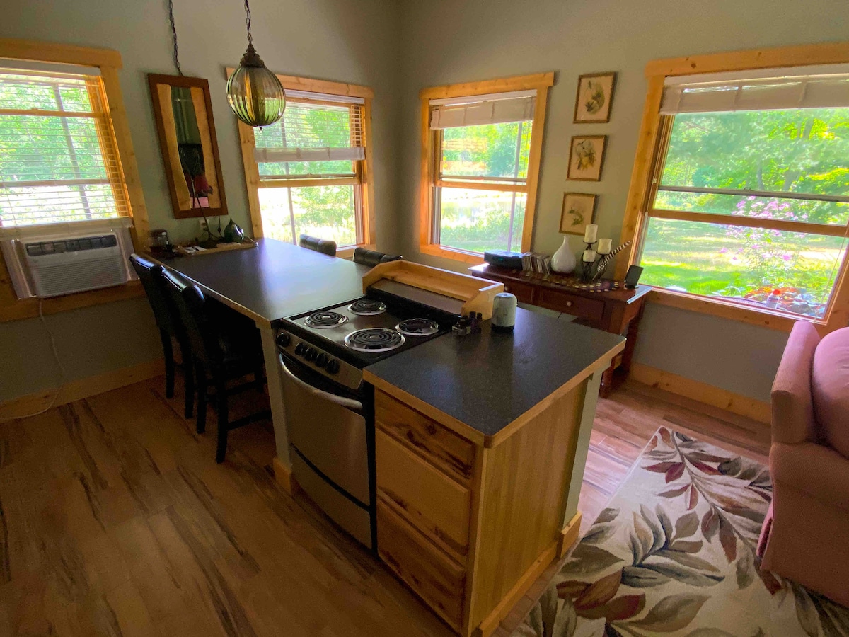 Cozy getaway for two! The perfect place for being alone together. Quiet with complete privacy on the edge of a natural pond and clear running stream. Abundant wildlife and excellent birdwatching. Paths for walking along the river. A quiet country road for a longer stroll. So peaceful!