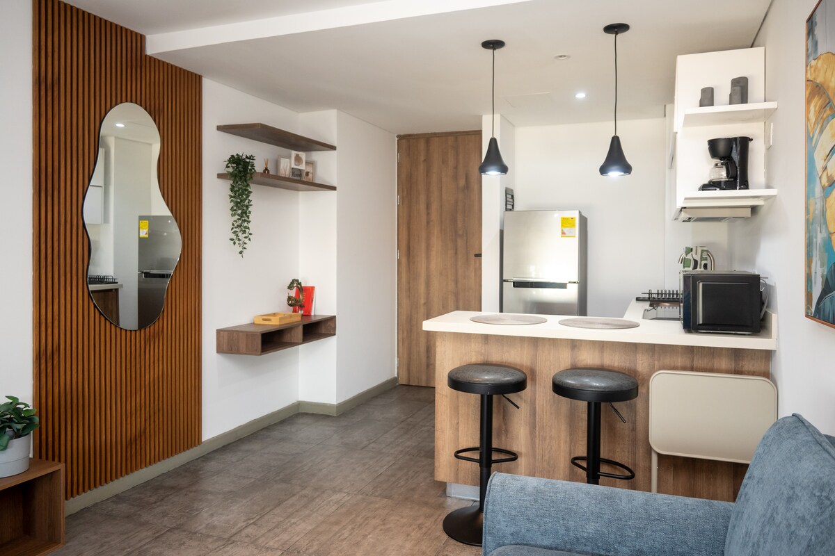 在GZ Tower 9樓的這間現代閣樓式公寓享受難忘的體驗: *彈性入住和退房 *Wi-Fi 900 Mbps *距離伊比利亞美洲診所一個街區,距離Viva Mall三個街區。 * 1間臥室,配有標準雙人床和空調。 *配有沙發床和空調的客廳。 *洗衣機/烘乾機 *附近有Smartfit健身房(收費)。 *免費私人停車位 *理想位置:靠近購物中心、主要診所和旅遊區。