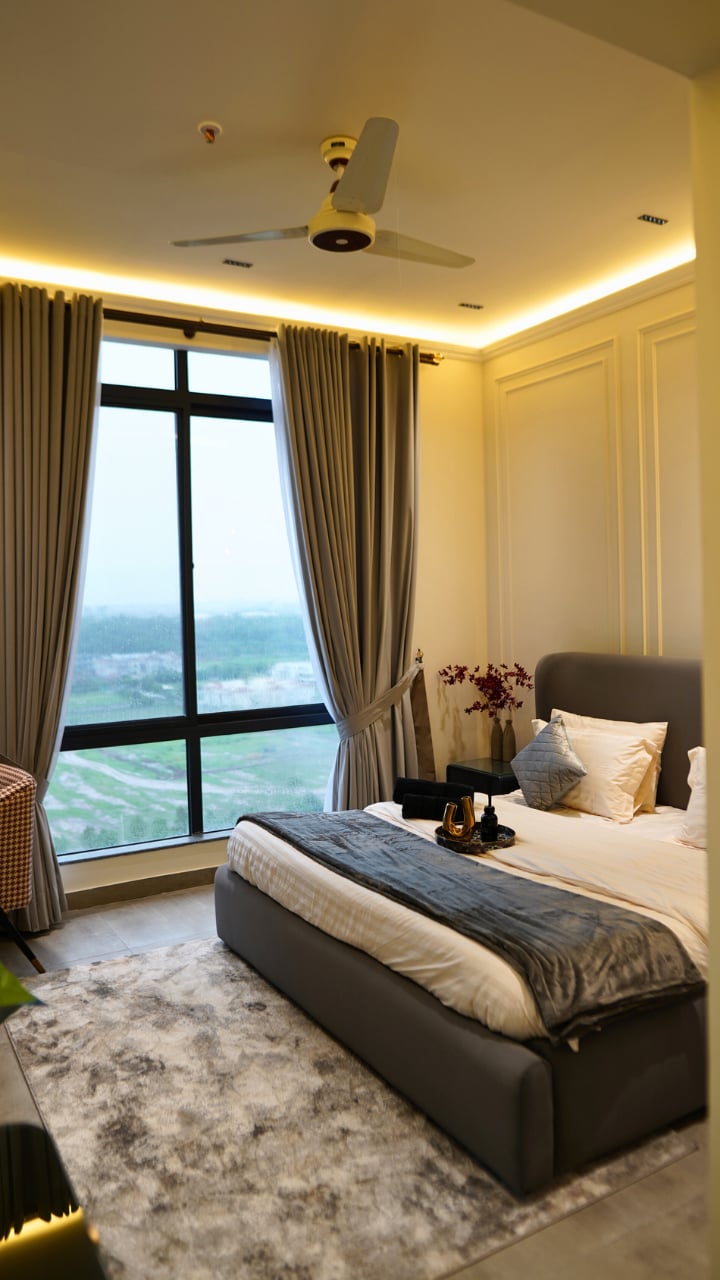 SkyPark One 豪華 2 房 1 衛 | 設計師設計的生活空間,俯瞰迷人的景色 入住這間寬敞的設計師公寓,俯瞰伊斯蘭堡的寧靜山丘。 享受2張加大雙人床、私人陽臺、65吋智慧電視、超高速WiFi和全套廚房。 位於 SkyPark One 美食廣場上方,距離高速公路 2 分鐘。 非常適合家庭或商務差旅人士。 現代裝潢、智慧鎖、變頻空調和熱水,確保舒適的住宿體驗。 18 歲以上的房客須提供身分證。 禁止吸煙或舉辦派對。立即預訂!
