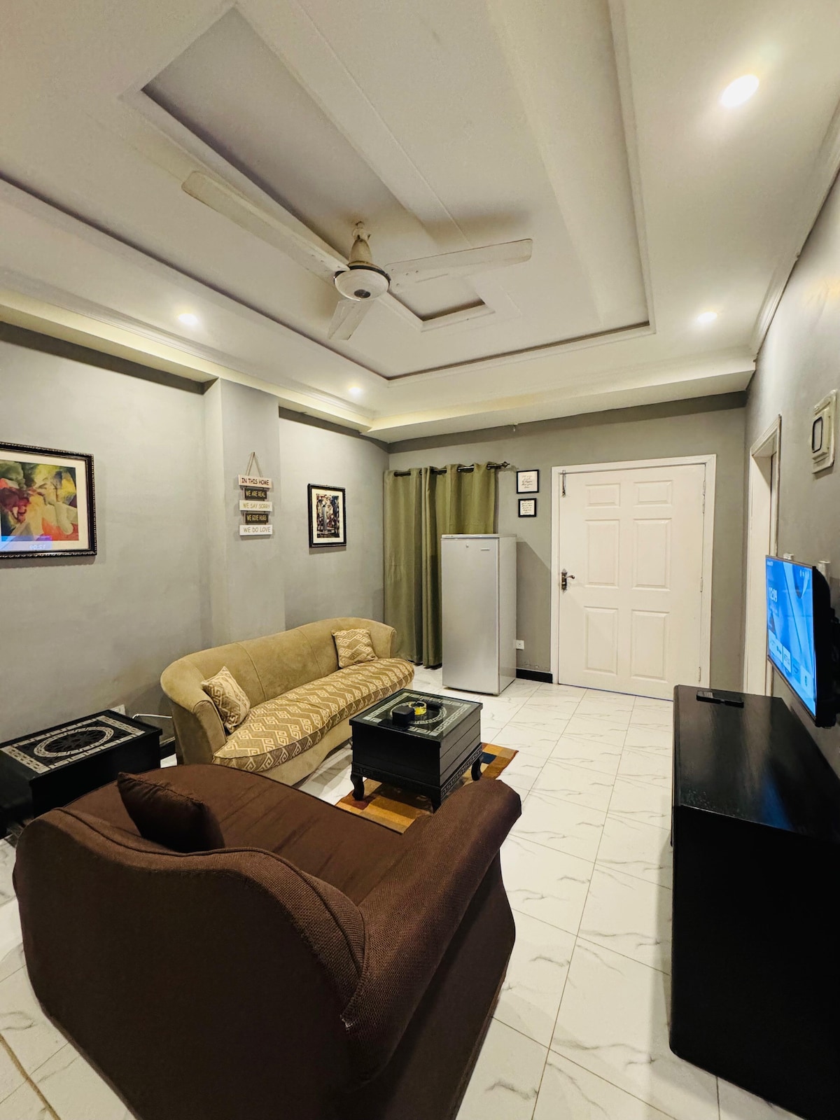 伊斯蘭馬巴德市中心的🏡私人度假勝地 在這間寧靜的 1 臥室公寓中體驗舒適與便利,距離Centaurus不到 1 分鐘車程! 享受加大雙人牀、沙發牀和配備迷你冰箱和微波爐的舒適小廚房。 Netflix和300多個有線頻道等著您的娛樂! 享用我們的單點式菜單,提供早餐、午餐或晚餐選擇! 獨立入口和停車位確保完全的隱私。 🚗 注意:這並非獨棟房屋/客用住房。