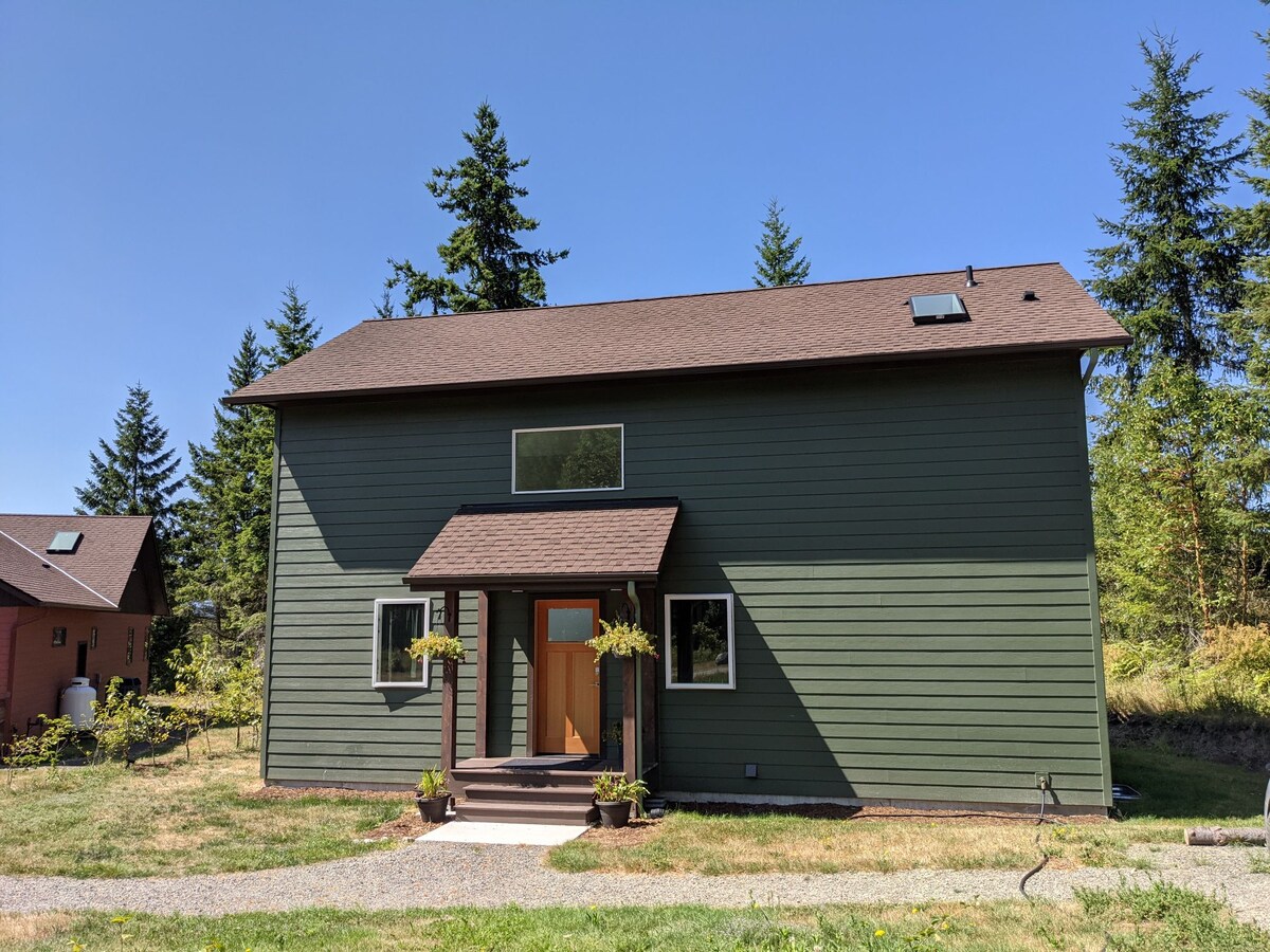Light and roomy 949 sq. foot home on seven acres at the end of a private lane eight miles from Port Townsend. Our home is a few feet away but we respect your privacy. Miles of trails out back, west facing view of Discovery Bay. The bath has a shower only, no tub. It seldom gets too hot here, but there is no air conditioning. There is no cleaning charge if the place is left reasonably clean. Please notice that we request no smoking or pets, and a maximum of two guests.