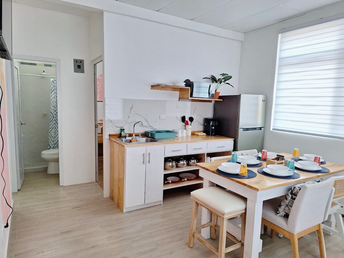 Modernidad y confort en un espacio ideal para parejas o familia pequeña. Si vienes de turista, o vienes por trabajo, de todas maneras tendrás lo que necesitas muy cerca de ti. Puedes ir y venir andando a pie a la Isla de Flores y disfrutar de su vida nocturna, hacer tus comparas en el mercado local o super mercado, encontrar varios cajeros automáticos, bancos, etc.