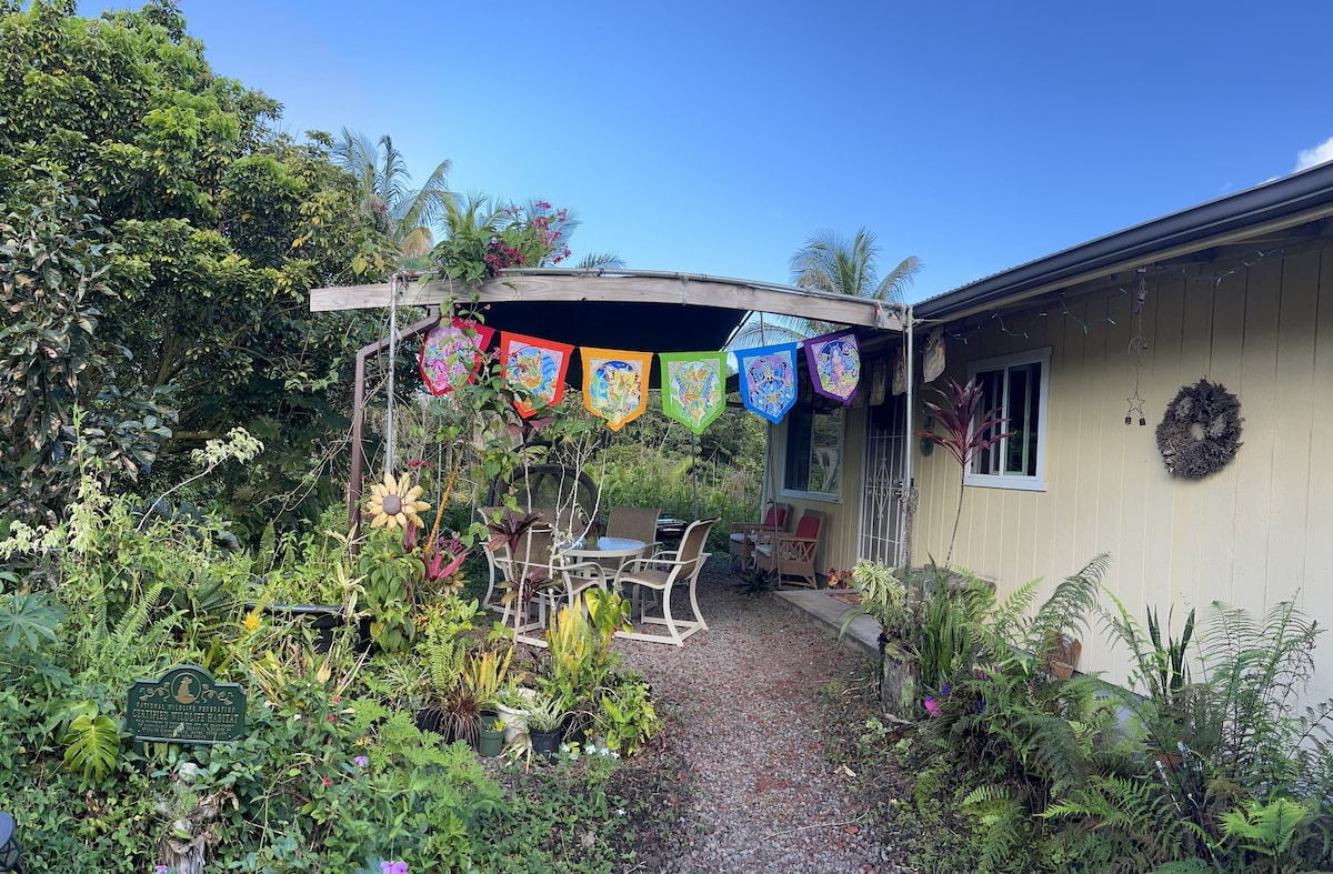 HI Vibration Hale位於Puna的Orchidland Estates。它位於希洛以南15-20分鐘,距離位於大島東側的帕霍亞14分鐘。Hale是一個神奇、浪漫、治癒的地方,周圍有香蕉、椰子、酪梨、酸棕櫚、百香果、芒果、荔枝、星果、柑橘等熱帶果樹!這裡有一個美麗的有機蔬菜園!房客可享用時令水果、自製果醬和茶葉混合作早餐。和平、快樂和阿羅哈!