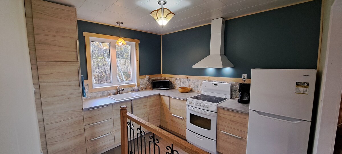 小屋(2023 年建造)位於河畔,坐落在迷人的聖路易德庫德雷島村。 您將在迷人的夏爾勒瓦裝飾中找到所有現代舒適設施。 房源有兩間獨立臥室(配有標準雙人床)、一張沙發床和一個設備齊全的廚房。 公共空間(廚房、餐廳、客廳)的天花板高 14 英尺,窗戶豐富,景觀壯觀。 後露臺寬敞。