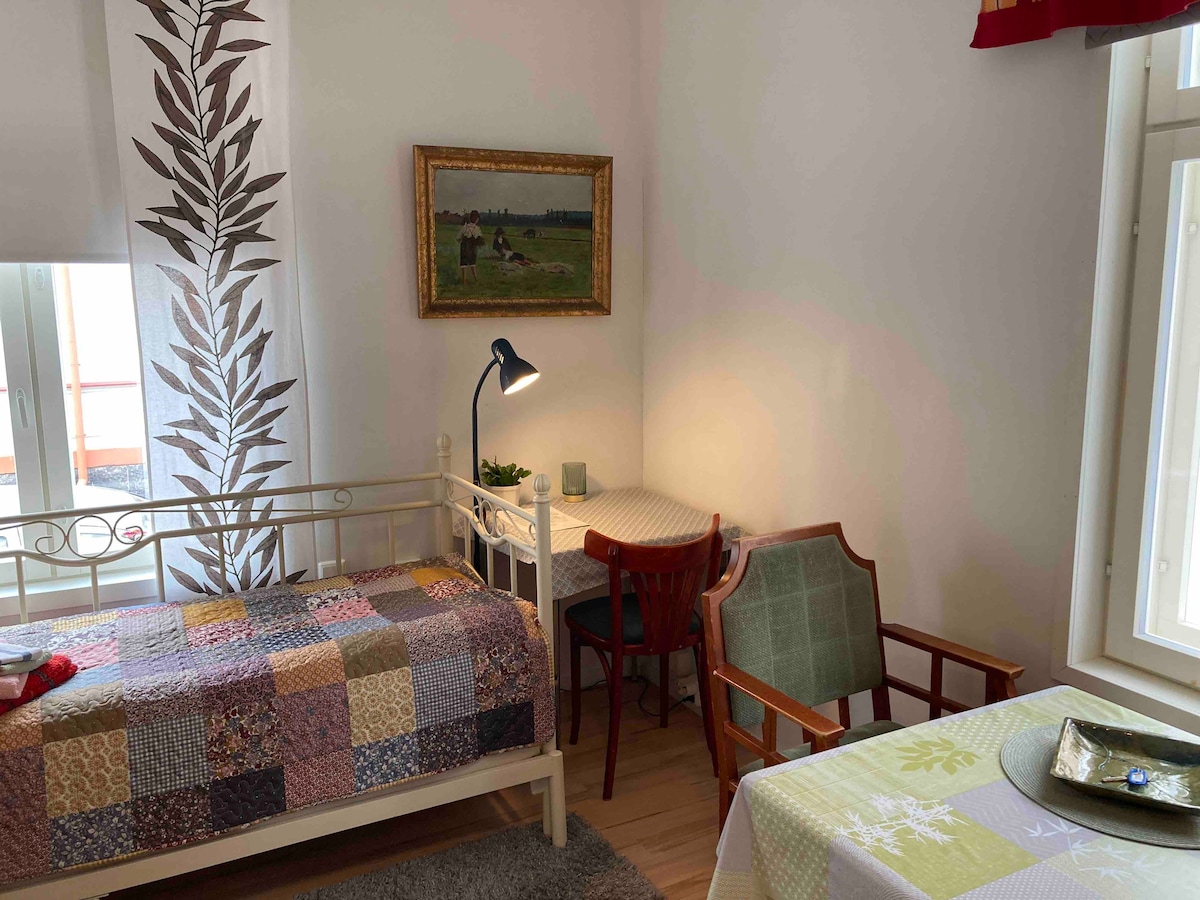 Pieni kompakti yksiö puutalossa keskustassa.