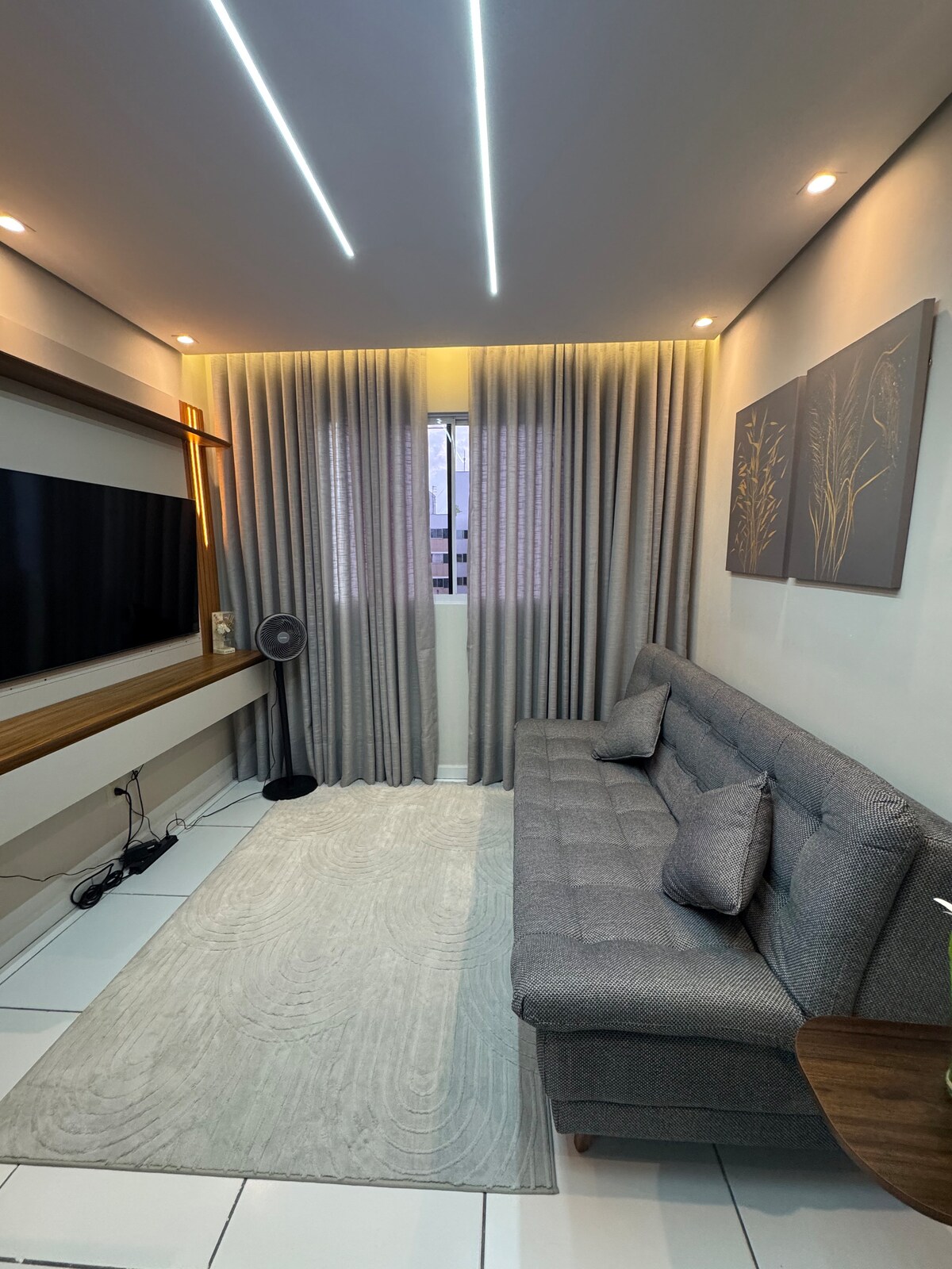Desfrute de uma experiência premium com vista panorâmica de Belém. O Studio se destaca pela funcionalidade: a divisória com porta separa o quarto do estar, oferecendo privacidade superior. Relaxe na cama de casal ou no sofá-cama confortável (ideal para o 3º hóspede). O entretenimento é garantido na Smart TV 65", que inclui Netflix Premium no plano. A cozinha é completa e o Studio oferece chuveiro elétrico, secador de cabelo e ferro. Sua tranquilidade é completa com a garagem coberta exclusiva.