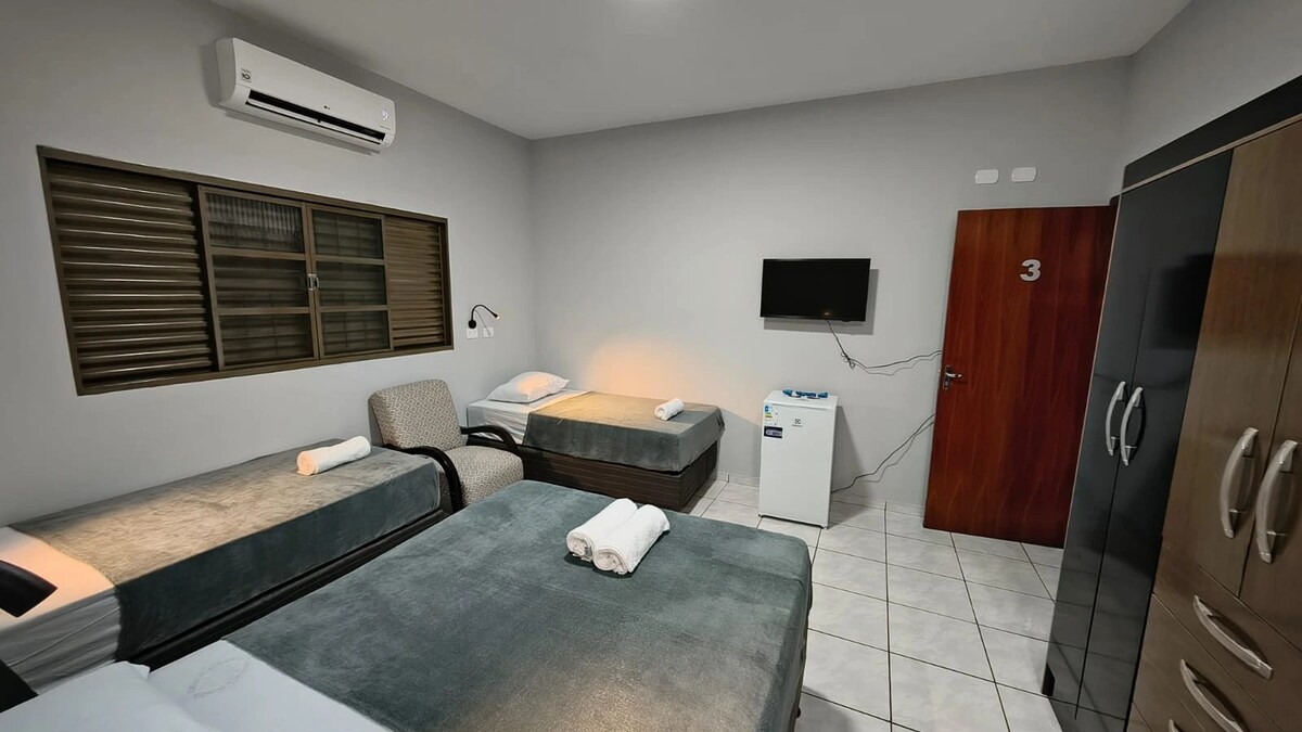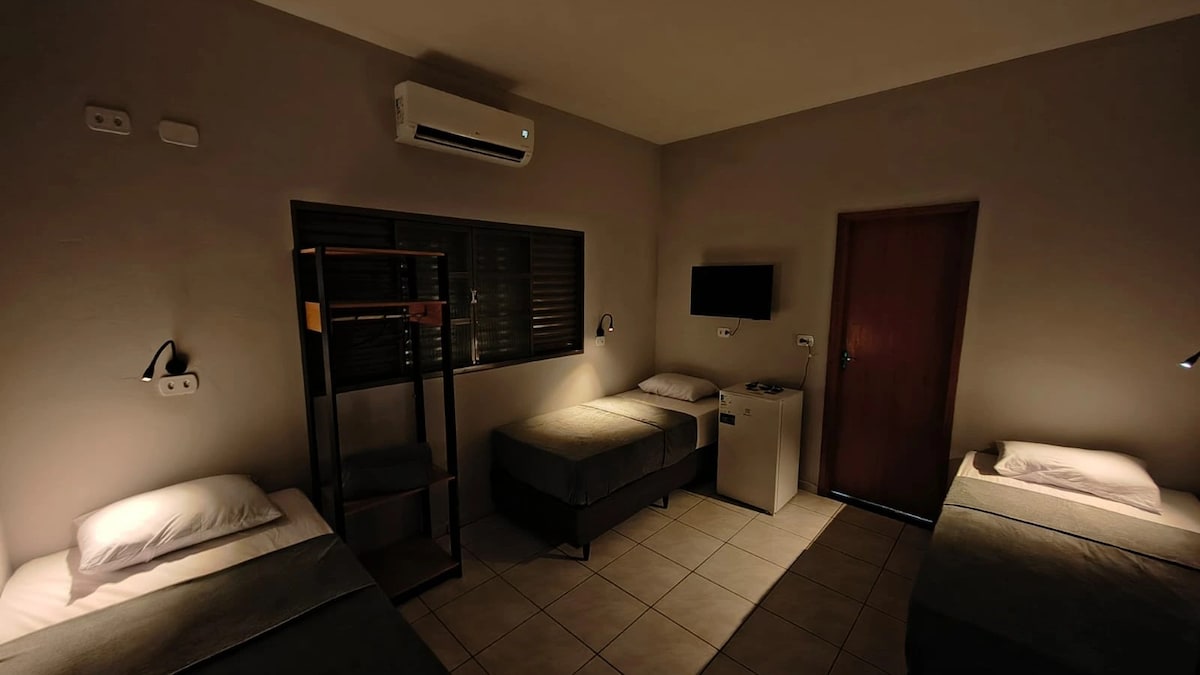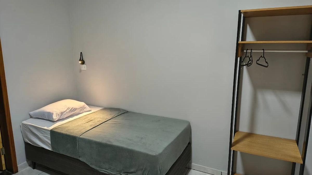 我們的空間距離普魯登特總統( Presidente Prudente ) 18公裏,距離機場約10分鐘車程,位於皮拉波茲尼奧( Pirapozinho )市中心。擁有獨立入口的所有權,距離商業區三個街區 此房源提供:無線網絡、工作臺、帶沙發和電視的客廳、浴室、一間配有空調的寬敞臥室、一張雙人牀、一張上下鋪牀和輔助。 此外,廚房還配備了一些餐具、桌子、冰箱和微波爐。