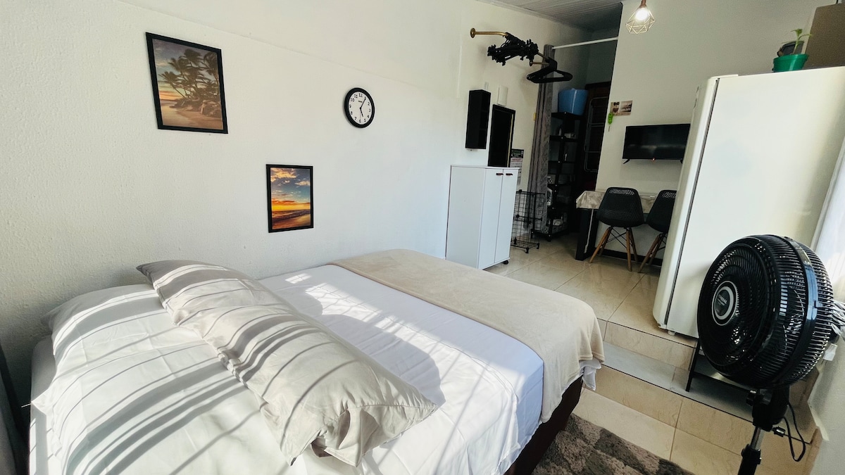 房源位於海灘、摩天輪、北巴拉碼頭、超市、藥店、餐廳、便利店和加油站附近... 獨立於主屋的空間。 僅使用同一入口。 位於一樓,有陽台。 廚房配有爐子、冰箱和一般用具。 洗衣房、洗衣機。 有 1 間臥室,配有 2 張雙人床和 1 張雙人床墊,可在地板上使用。 每人額外收取 R$ 50.00。(最多 2 人)