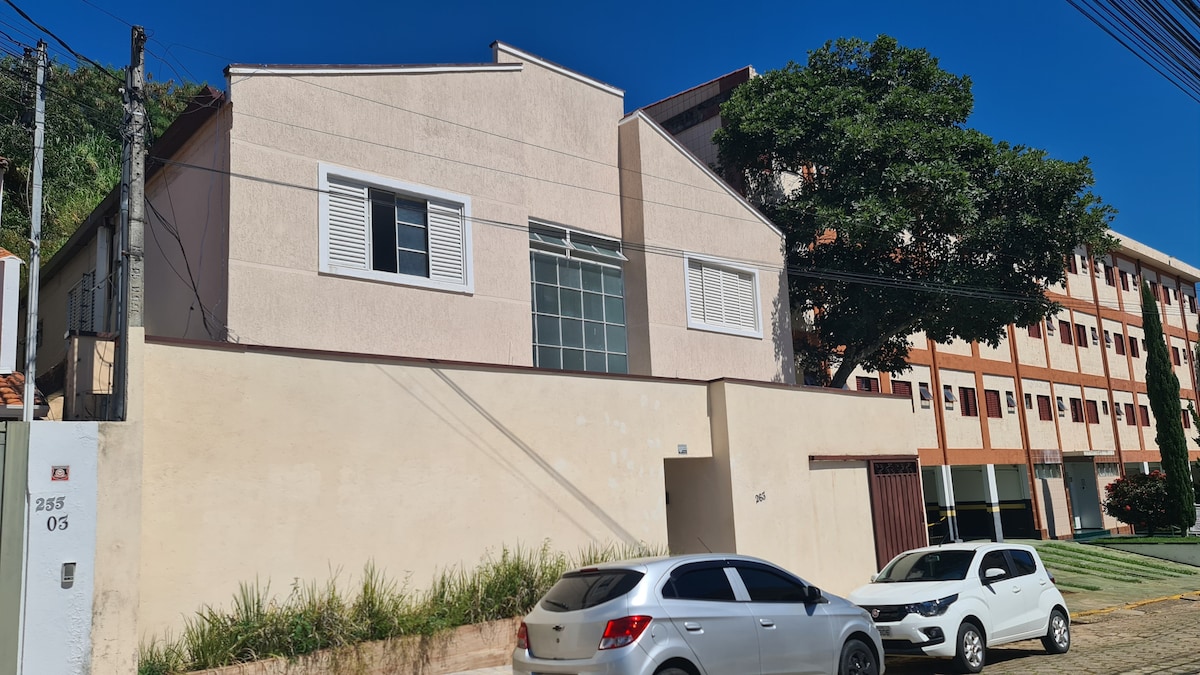 全新、現代化且舒適的空間,配備: - 私人WiFi - 全新設計的家具 -空調(冷暖) -電子鎖和安全攝影機 - 智慧電視,可收看多個頻道 - 包括優質的床單和浴巾 - 設備齊全的廚房 -電動毛巾架 -遮光窗簾 -自行車架 - 家庭辦公空間 - 街區和地理位置優越:靠近 24 小時便利商店、藥店、小吃店、廣場、Unimed 和 Unifei
