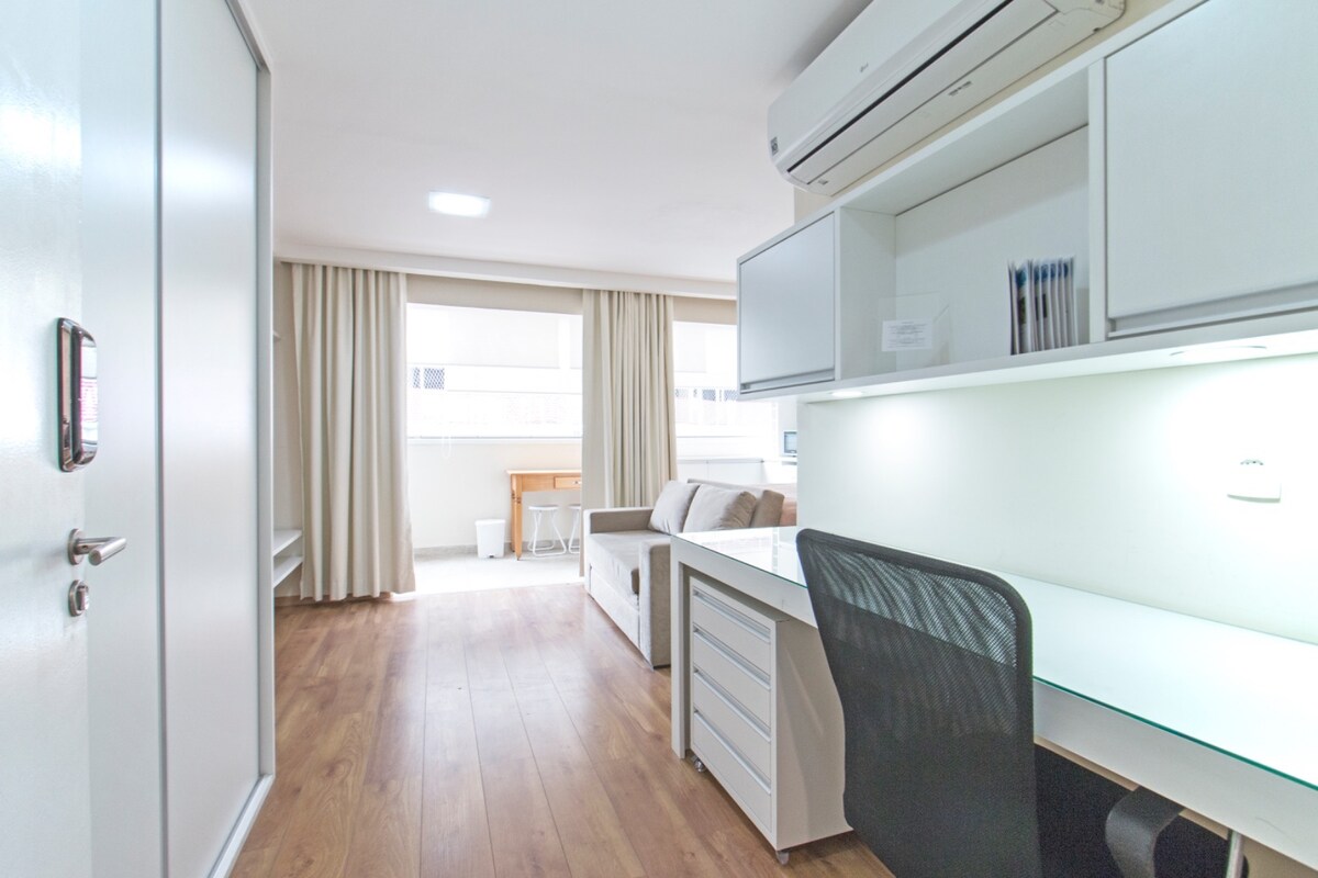 Studio You Faria Lima c/ piscina e vaga veículo.