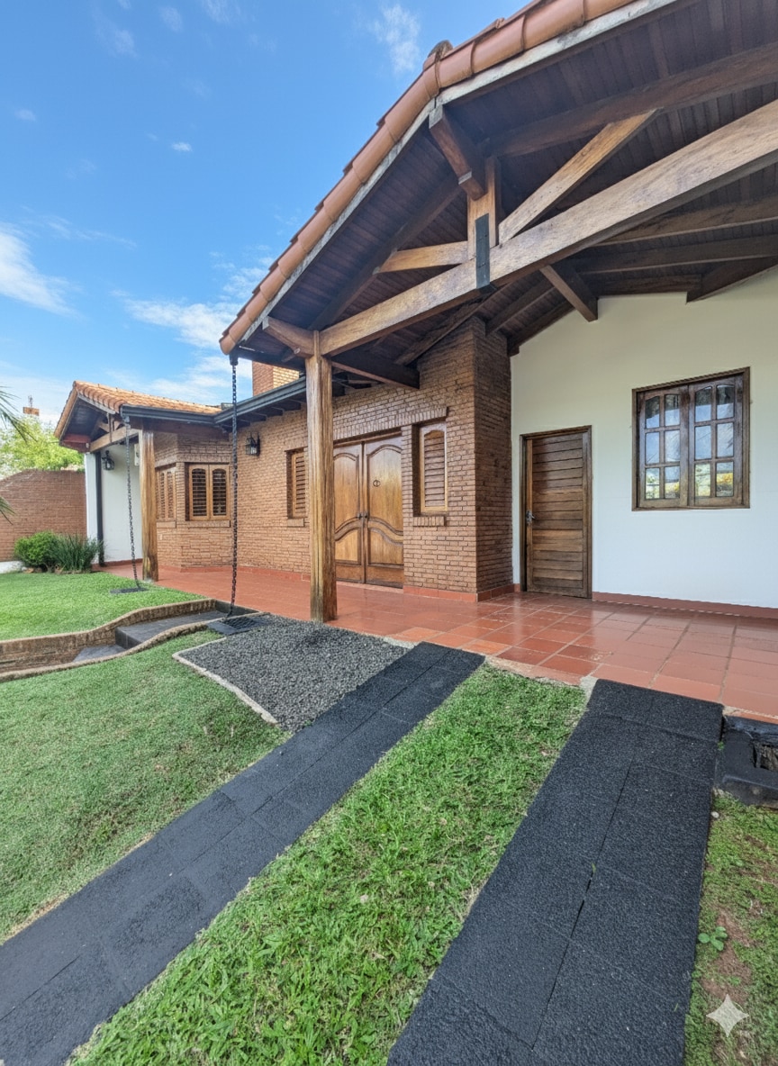 Casa totalmente amoblada en zona céntrica y segura de Encarnación. Ideal para vacaciones o estadías por trabajo. Cuenta con 6 habitaciones (3 en suite, una con jacuzzi), 5 baños, cocina equipada, sala de estudio, piscina privada, quincho con parrilla y wifi en toda la casa. Estacionamiento disponible. Cercana a playas, shoppings y restaurantes. Perfecta para grupos de hasta 11 personas.