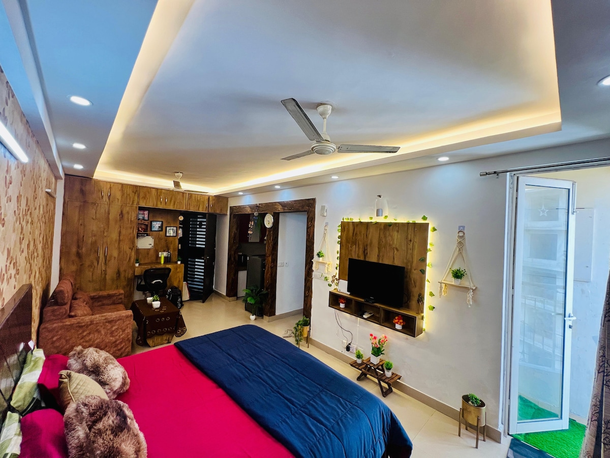 Welcome to our studio Oasis! Immerse yourself in stunning interiors, natural light, and top-notch amenities. Whether you're here to work or unwind, our comfortable bed and workspace ensure a perfect stay. Discover your ideal getaway in a secure community with 24/7 security. Stay worry-free with uninterrupted power backup, and whip up your favorite meals in the well-equipped.