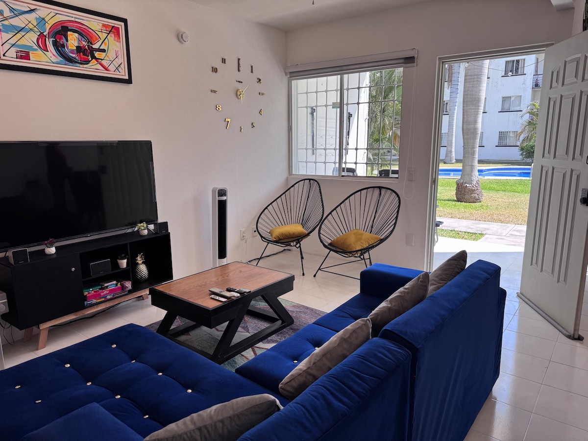 This beautiful and cozy apartment; we are experienced hosts, our goal is to make your stay unique and unbeatable. *Located a block and a half from downtown Tepoz: a unique destination thanks to its holistic and energetic atmosphere. *Ideal to discover and immerse yourself in the local environment with your partner, family or friends. *Spacious rooms, equipped kitchen, dining room and terrace. *Internet to work from home. *Parking. *Pet Friendly.