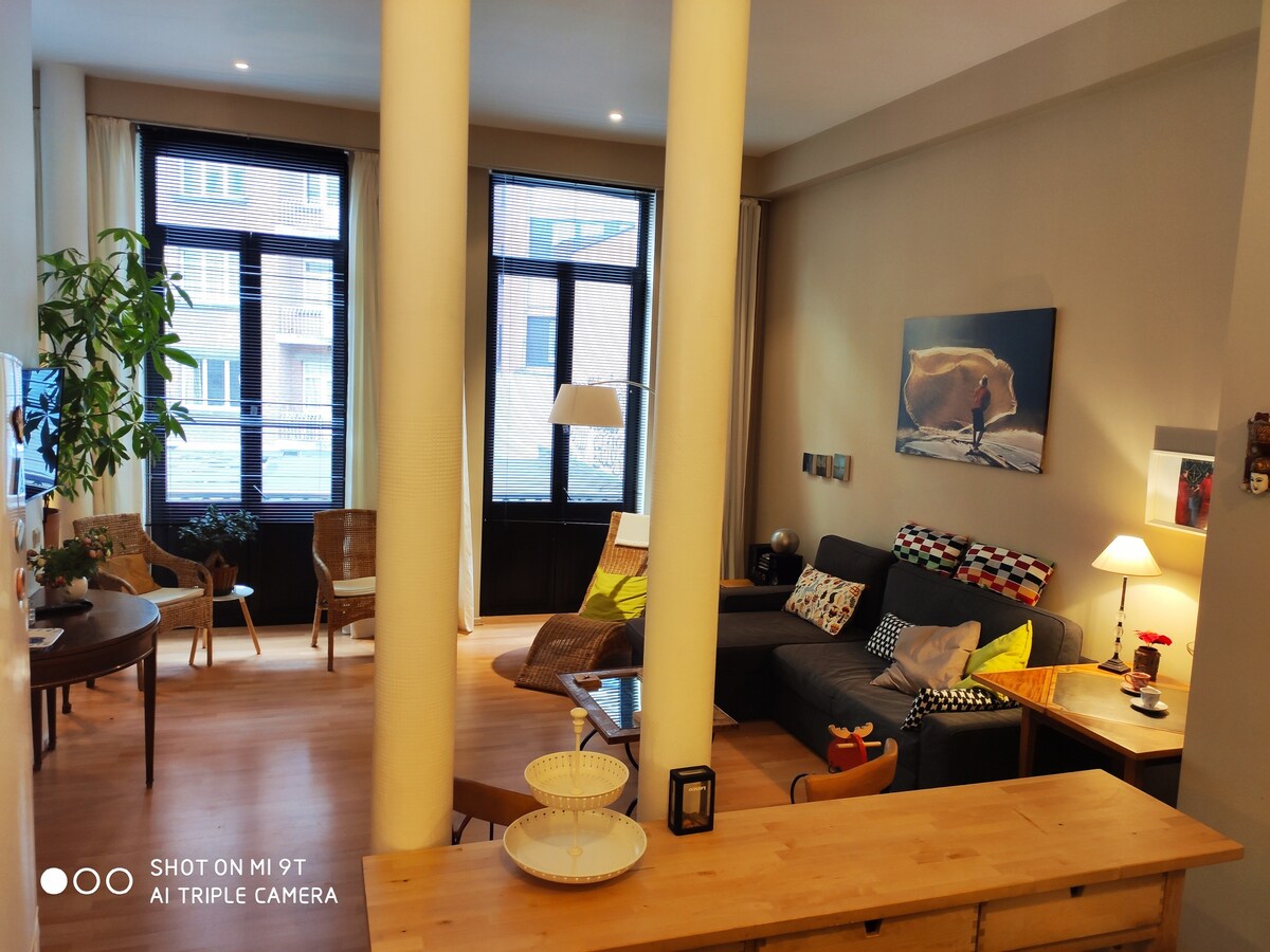 在靠近伊克塞爾斯池塘 (étangs d'Ixelles) 的美麗街道上,迷人的閣樓住宿。步行 5 分鐘即可抵達熱鬧的弗拉蓋廣場 (Place Flagey),步行 10 分鐘即可抵達大學。伊克塞爾斯池塘 (Étangs d'Ixelles) 就在街尾,乘坐巴士 15 分鐘即可抵達大廣場 (Grand-Place)。55 平方公尺。