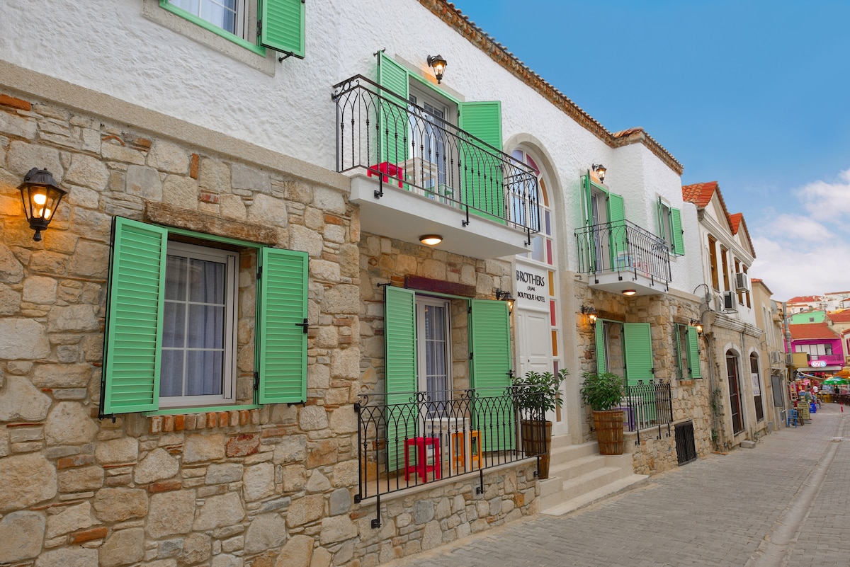 在Alaçatı市中心,入住溫馨的房源! 我們的飯店位於Alaçatı市中心。 這個獨特的地理位置讓房客有權只需幾個步驟即可抵達Alaçatı最受歡迎的咖啡館和餐廳。 由於我們靠近公共交通設施,您可以輕鬆探索Çeşme、Ilıca和周圍的海灣。 在我們的飯店將歷史悠久的石頭建築與現代舒適性結合在一起,您將在每一個細節中感受到Alaçatı的精神。