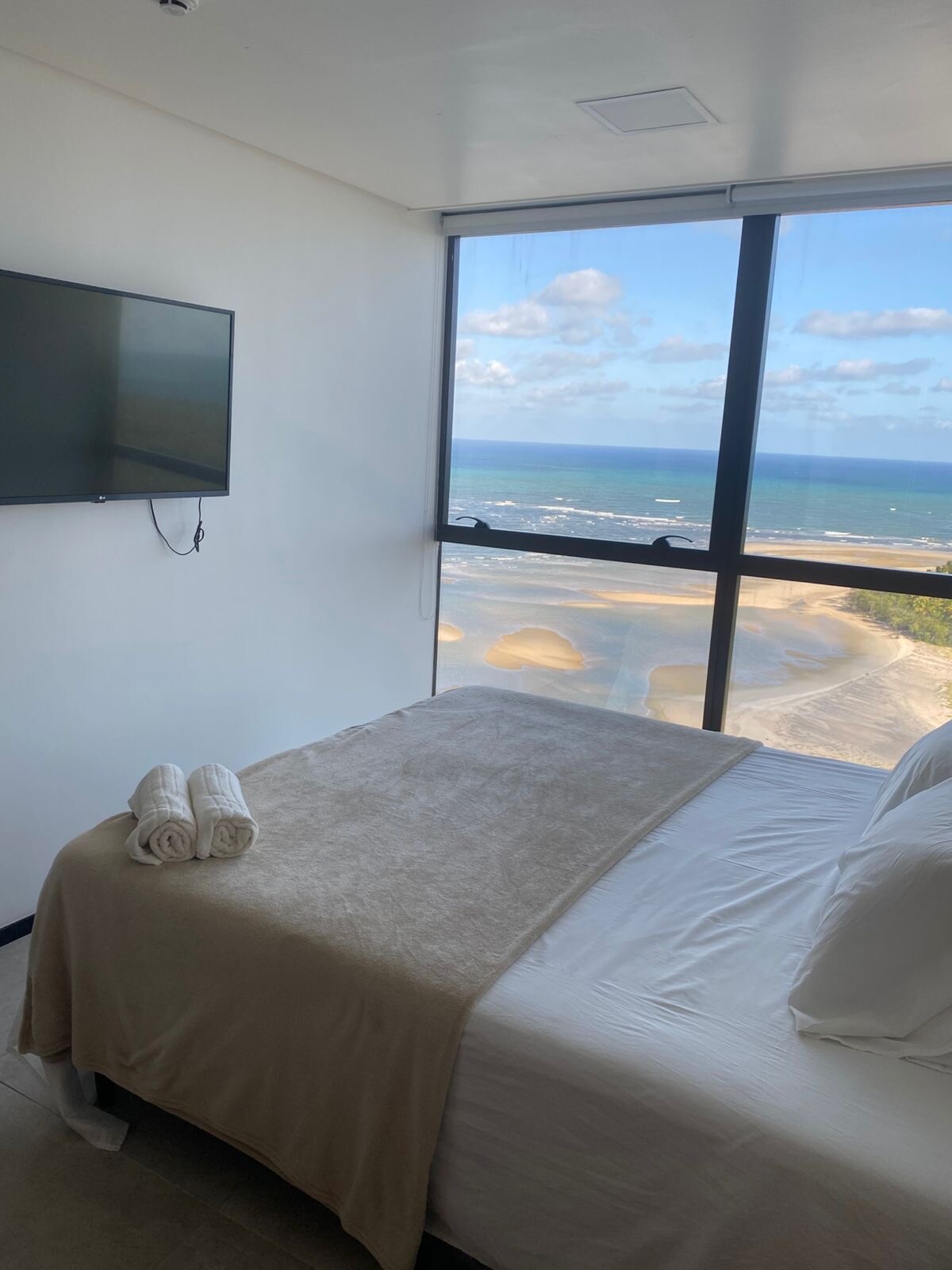 美麗的公寓,有2間臥室,位於11樓,有網路500mp、有線電視、Netflix、Queem牀、2張單人牀、[1張雙人牀]空調和智慧電視、2間臥室、沙發、桌子、全功能廚房、洗衣機、微波爐、冰箱、陶具。 車庫、發電機。24小時前臺、遊泳池、燒烤、購物累西腓。 女傭每天。麵包店、餐廳、雜貨店。 能量版權為10千瓦/天。 如果超過,每千瓦1.14美分。