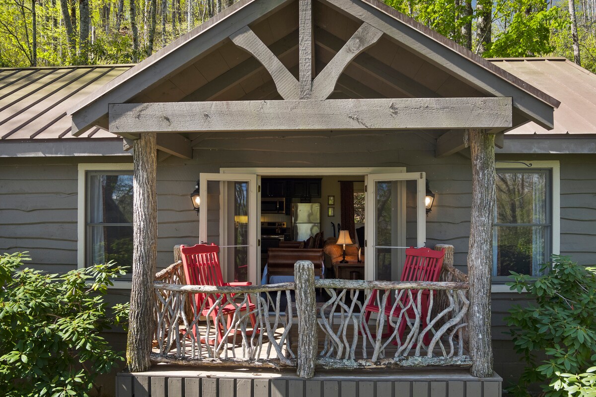 位於4000多英尺,步行10分鐘即可抵達杜鵑花步道上的小鎮。 2017年全面翻新!!光線充足且陽光明媚的3床/2浴室,750平方英尺。最初由我妻子的曾祖母在1940年代建造。地板到天花板的交錯接合、17英尺高的天花板、硬木、回收穀倉木材、定制固定裝置、加熱大理石/石板浴室地板、無水箱熱水器、瓦斯壁爐、門廊、WiFi、電視、洗衣機/烘乾機、小廚房。 美麗的花園!經典的高地魅力與現代舒適!遠足、釣魚、購物或放鬆!