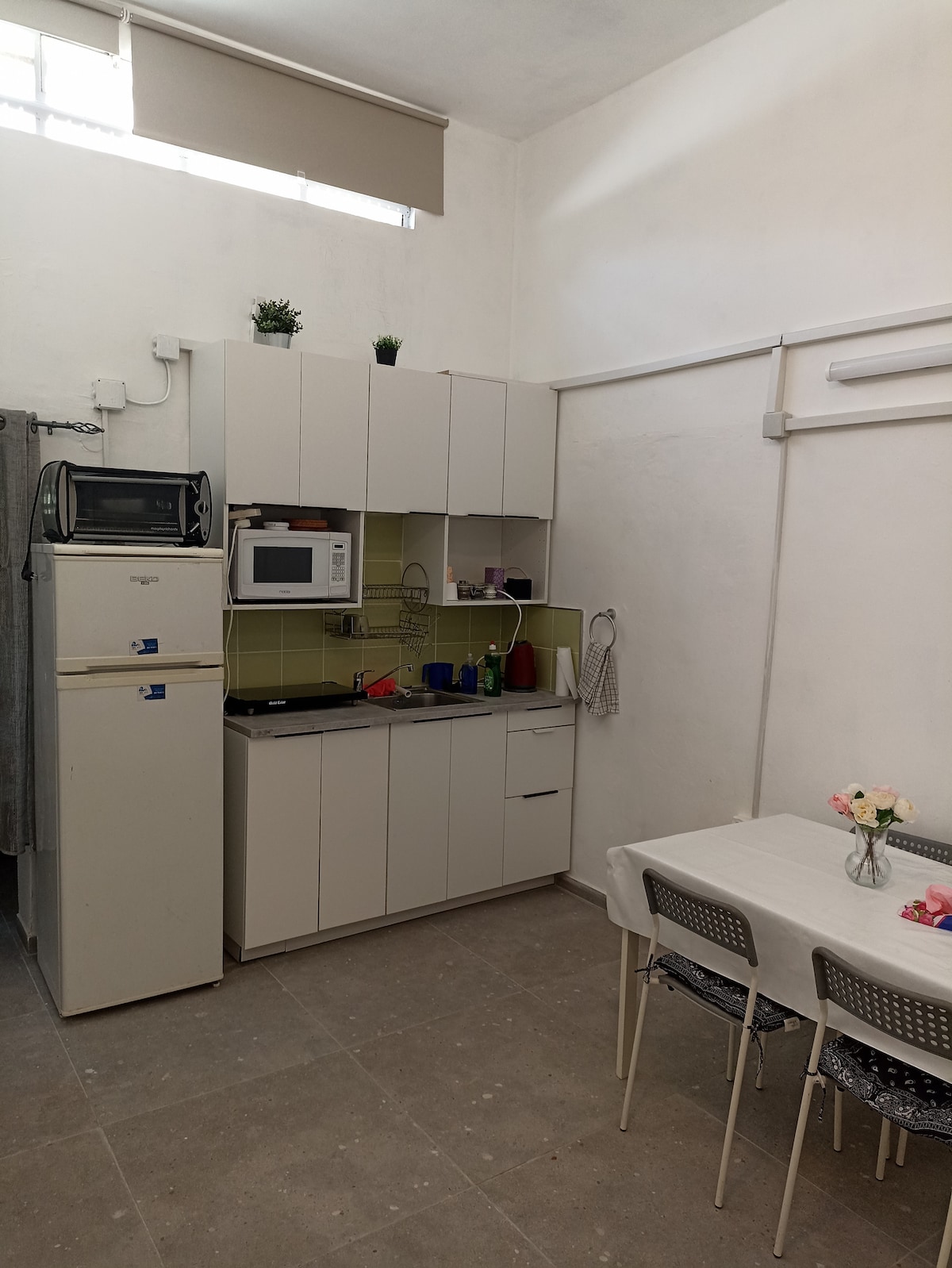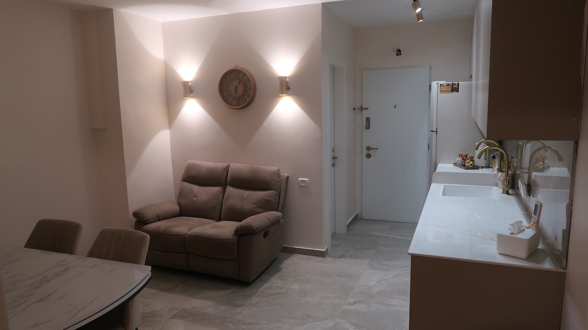 房源位於雅法市中心。 非常附屬於私人入口雜貨店,不在住宅建築中。 有一個大房間,一張沙發牀和小廚房,還有一個小房間,窗簾分開,還有一張雙人牀,從您到達浴室/淋浴間的小房間。 步行約7分鐘即可抵達山上令人驚嘆的雅法海。 步行幾分鐘即可抵達Wolfson火車站。 附近有巴士/輕軌。 附近有雜貨店和遊戲花園,夏季還有一個城市泳池。