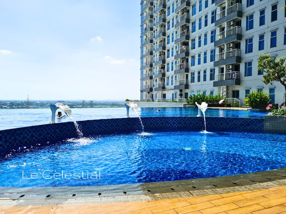 位於Citraland Vittorio的時尚全新2 +1BR公寓,提供免費停車位、泳池、健身房、69 mbps快速WiFi和Netflix。 泗水巴拉特(Surabaya Barat)主路的中心位置,步行即可抵達餐廳、咖啡廳、商店,開車10分鐘即可抵達Pakuwon Mall或收費公路。 大樓內最大的公寓,是度假、家庭或商務差的理想住宿地點,提供滿足您日常需求的設備:適合簡單烹飪的廚房、最優質的床墊和遮光百葉窗,可讓您好好休息,寬敞的儲物空間和冷熱水淋浴間。