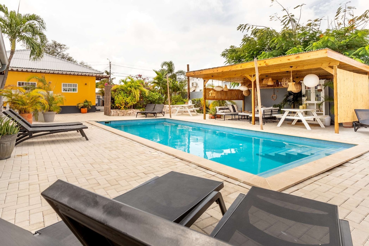 在島嶼陽光下,在家中醒來,享受陽光和海風。 TuKas.221.1是一個溫馨的隱蔽處,擁有質樸的魅力、私人小型泳池和熱帶庭院,由當地房東設計,他們將家庭住宅的一部分變成了庫拉索島的靈魂度假勝地。 走進去,感受島嶼的平靜節奏:在微風中烹飪、在開放的天空下淋浴,並在充滿自然光線的空間中放鬆身心。 已訂滿?點擊我們的個人資料,探索我們附近的第二個島嶼房源。