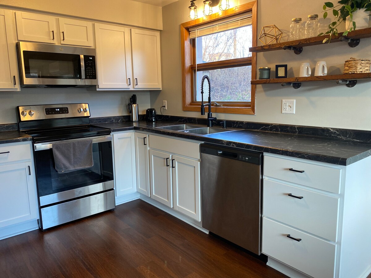 全新!全新翻修的2間臥室複式公寓,配備全新廚房!步行即可抵達Bethany Lutheran College和Mayo Hospital Systems。距離MSU-Mankato 5分鐘車程。這個精美的重新設計和位於市中心的空間非常適合任何住宿。配備超快速光纖網路、洗衣機和烘衣機。