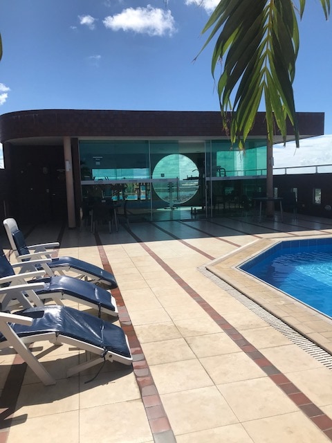 祝您在Natal的住宿愉快,在高標準的頂層公寓, 11樓,美麗的海景,有兩間套房,均配有家具,套房內有分體式空調,配有遮蔽陽臺的美食區域,配有私人泳池和私人燒烤架。 我們在蓬塔內格拉有有線電視、Wi-Fi、所有廚房用具,距離海灘400公尺,地理位置優越,靠近最好的餐廳、酒吧、商場、麵包店和咖啡館,位於蓬塔內格拉市中心,還有私人車庫。