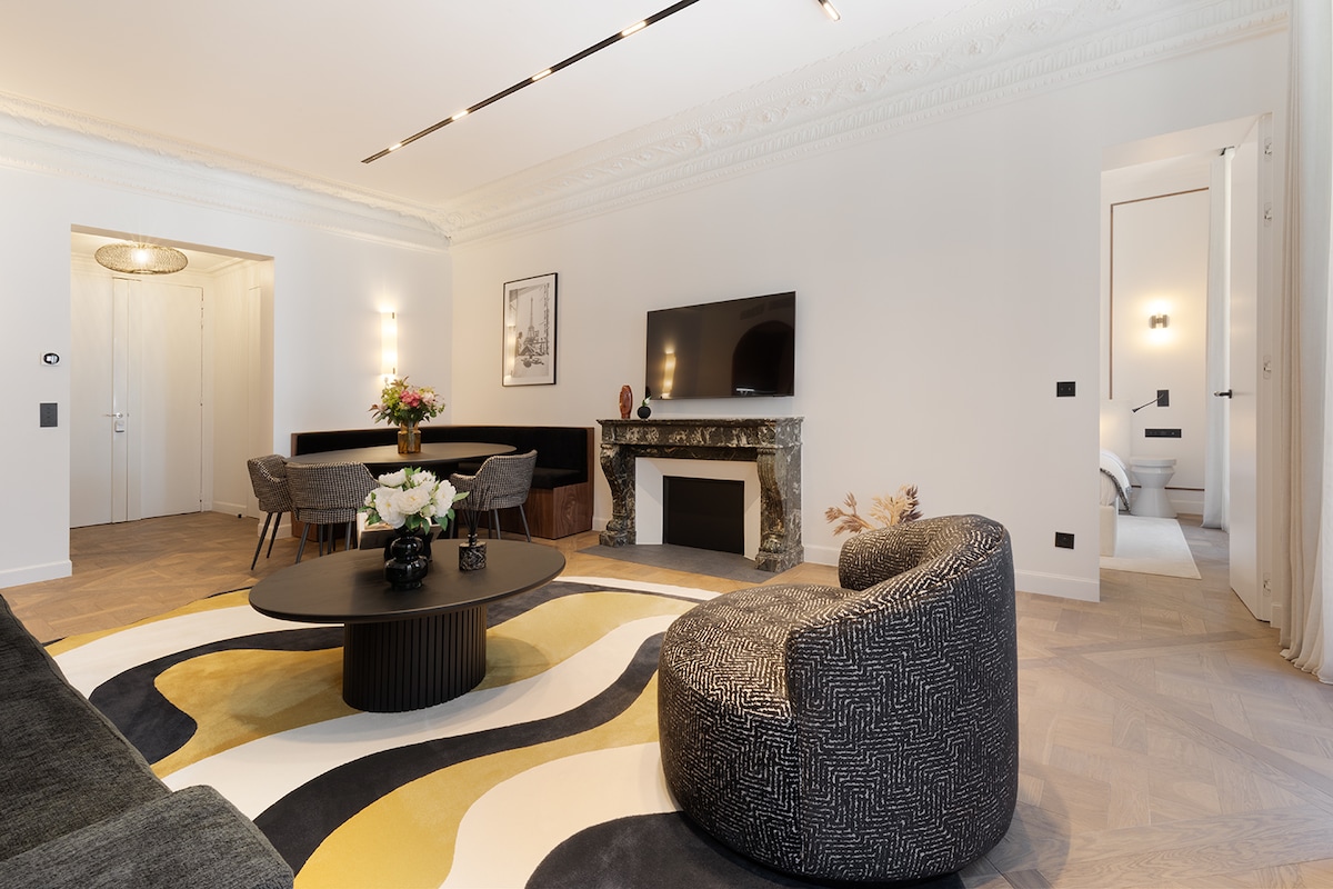 這套精緻的110平方公尺公寓擁有人字紋拼花地板、精美的家具和充足的自然光,提供明亮、優雅、溫馨和奢華的氛圍。公寓配有壁爐和模塑,結合魅力、平靜和舒適,位於巴黎歷史中心最古老的通道之一。此公寓擁有官方旅遊住宿營業執照。所以這是完全合法的。