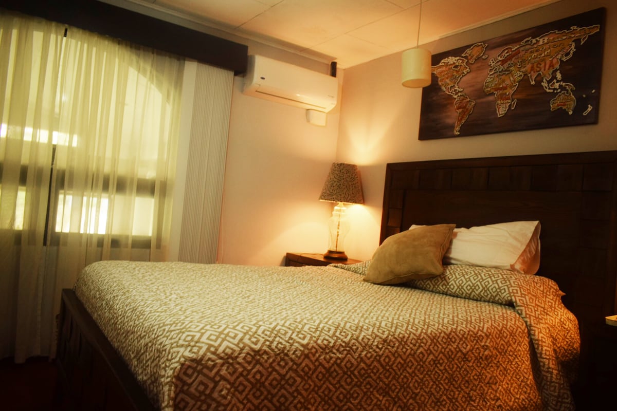 舒適,寬敞,如家一般的感覺。主客房配有空調,其他客房配有風扇。 停車位。距離大學5分鐘。靠近醫療中心、商店和餐廳。 首都附近。房子前面就有巴士站。設備齊全的大廚房和配備烘衣機和洗衣機的洗衣區域。 令人難忘、安靜和鼓舞人心的露臺,休息一下。附近的海灘、山脈、火山和公園。